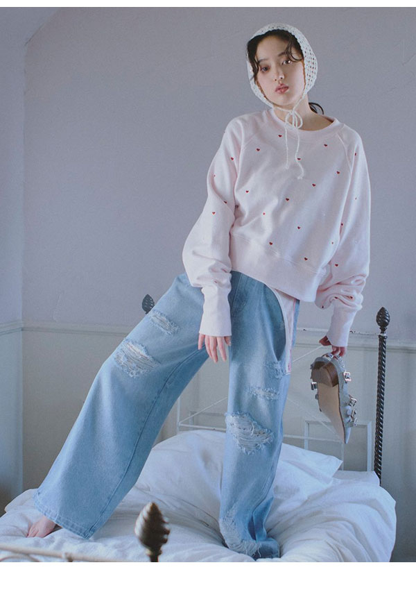 【即納】 ファーファー FURFUR トップス 25春夏 ミニハート刺繍スウェット 長袖 ミドル丈 ハート rwct251096