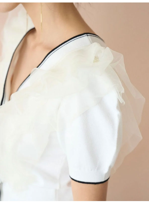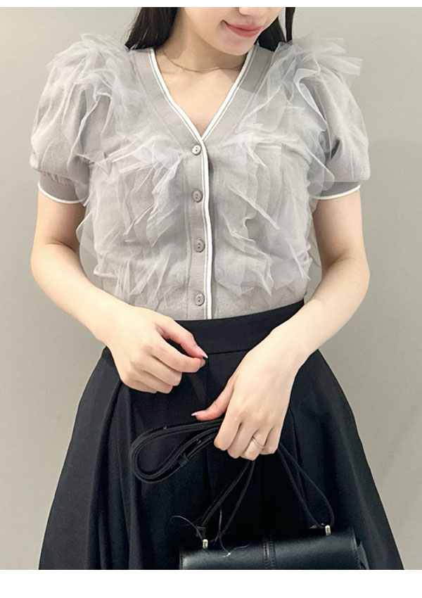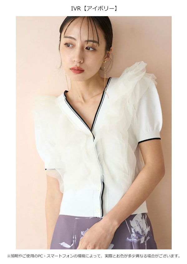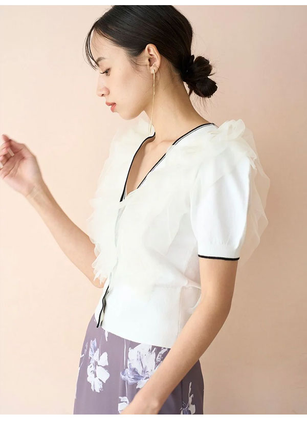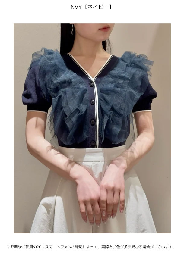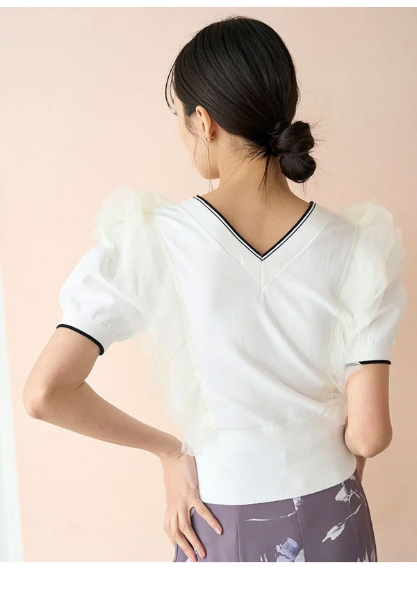 【新作10%OFF】【即納】 スナイデル SNIDEL トップス 25春夏 チュールフリルニットプルオーバー ミドル丈 半袖 swnt251084