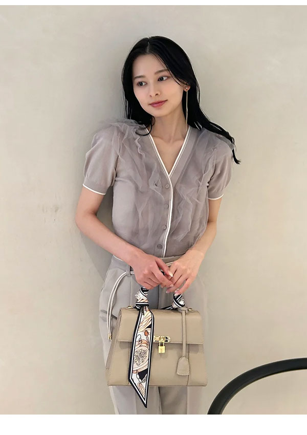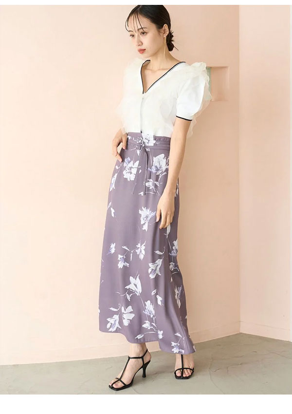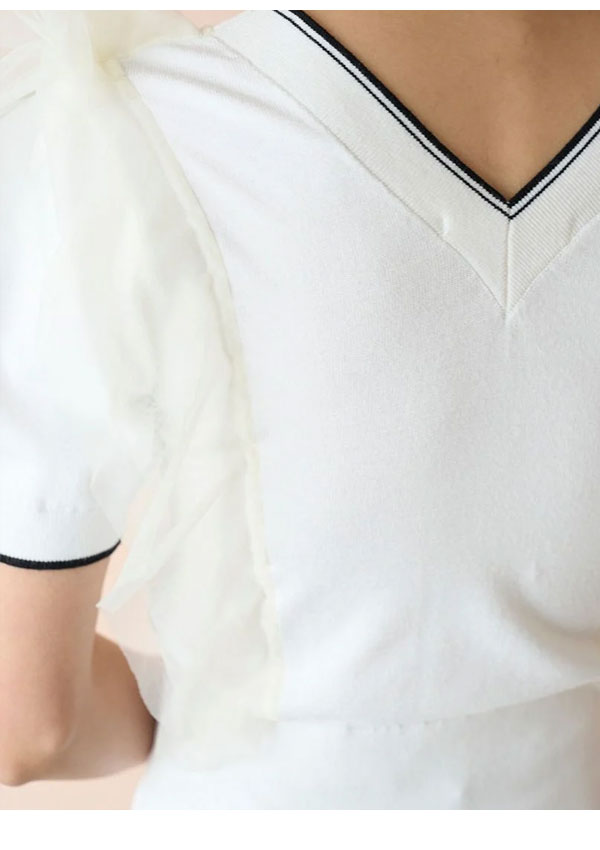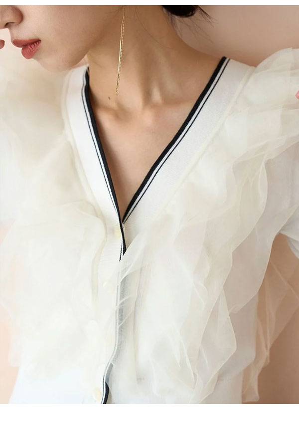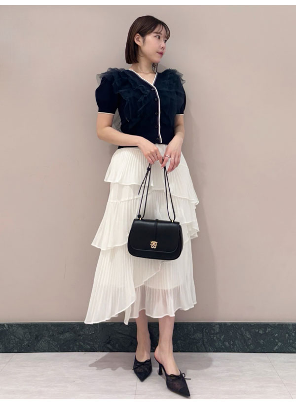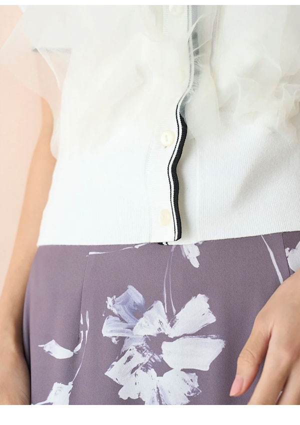 【新作10%OFF】【即納】 スナイデル SNIDEL トップス 25春夏 チュールフリルニットプルオーバー ミドル丈 半袖 swnt251084