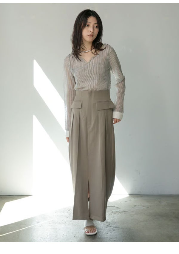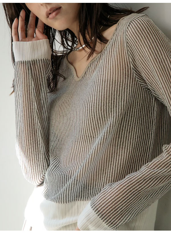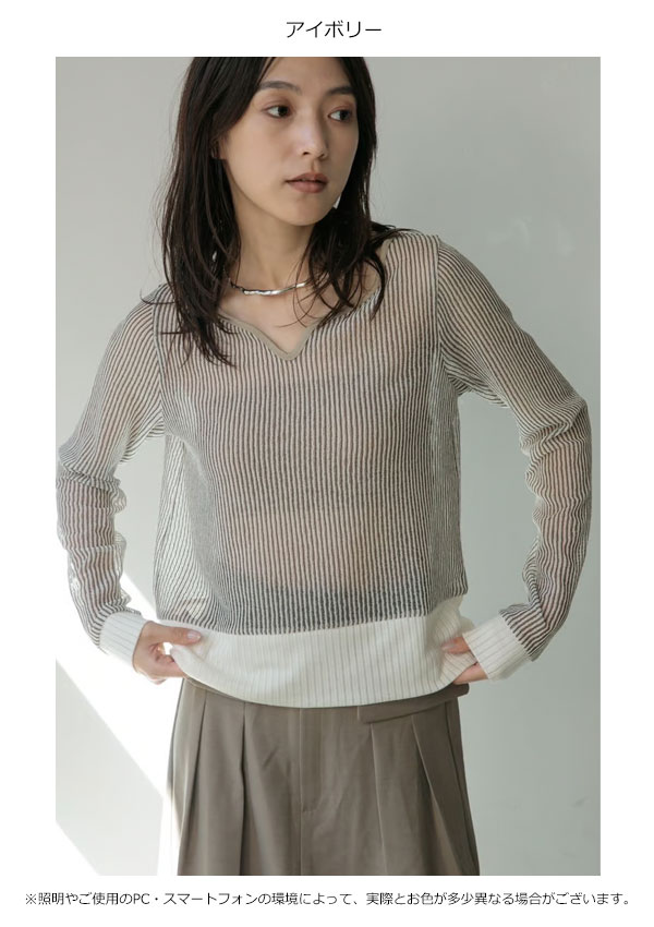 【即納】 アガウド AGAWD トップス 25春夏 Bicolor Sheer Tops バイカラーシアートップス ミドル丈 長袖 透け感 2519-661728