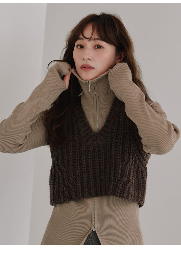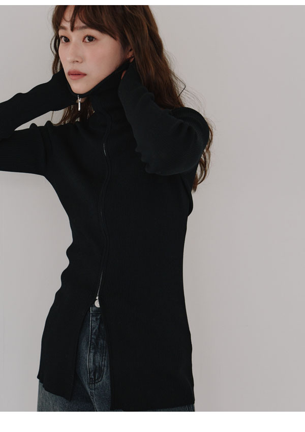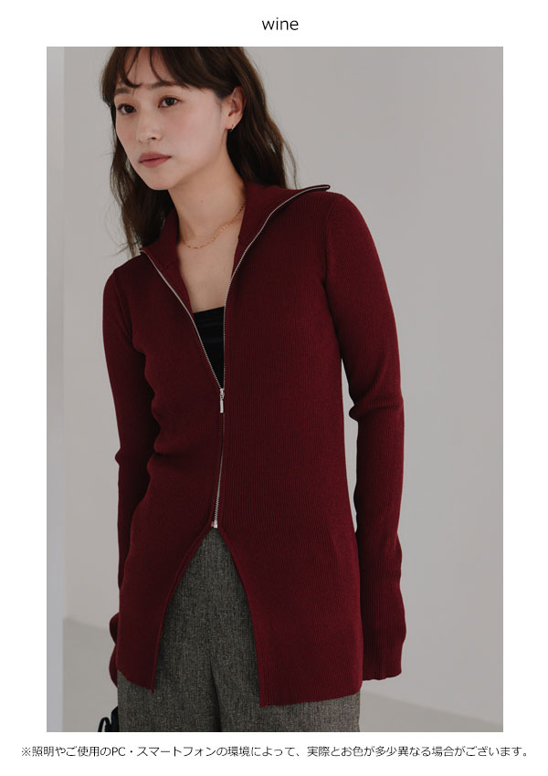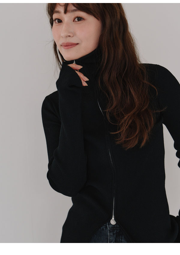 ヘラ Hella 25秋冬 トップス zip up rib knit 10月上旬~下旬予約 ジップアップリブニット ミドル丈 長袖 h253-95