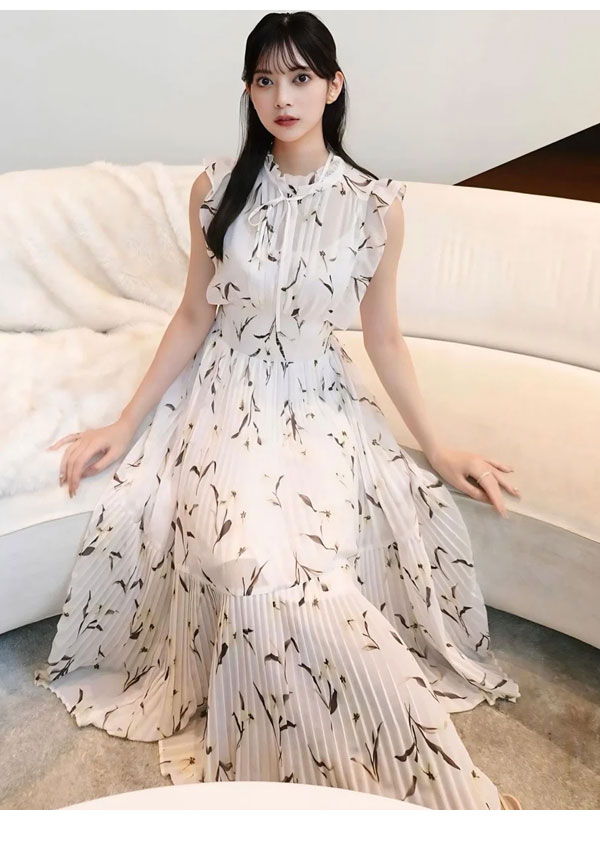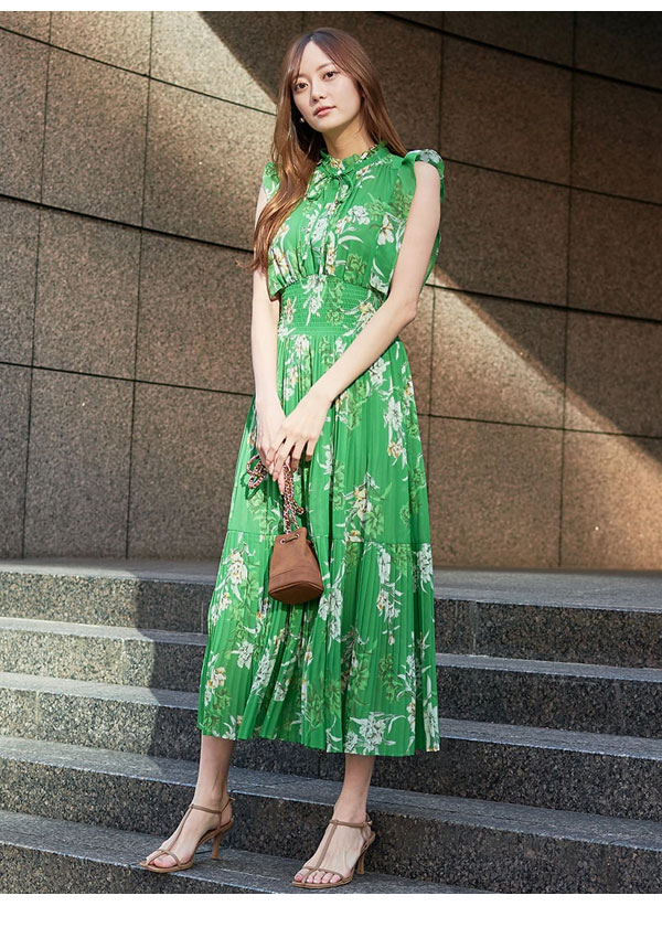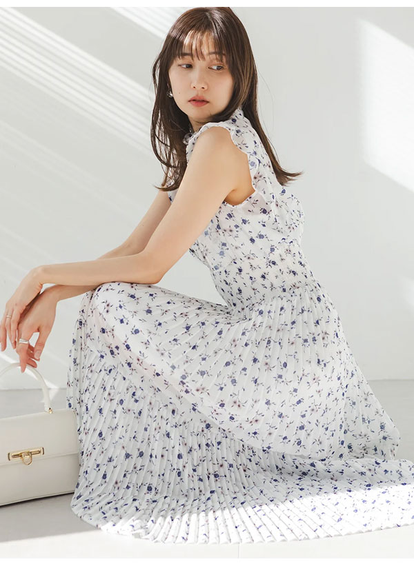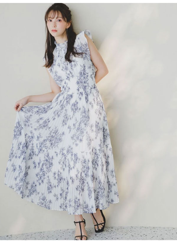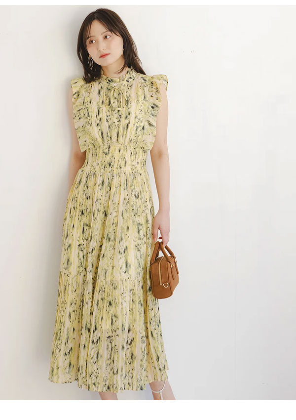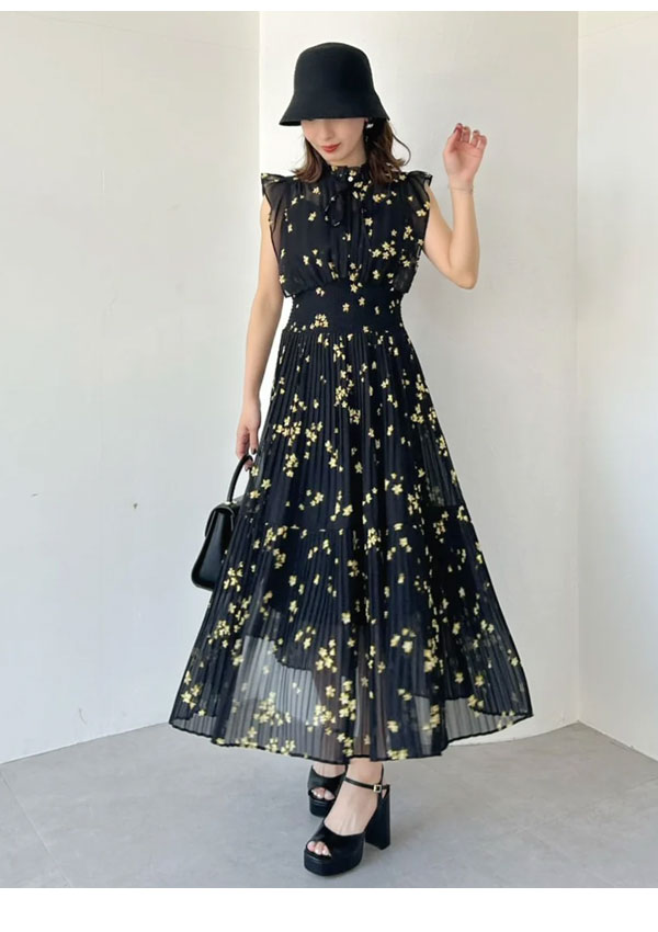 【即納】 スナイデル SNIDEL ワンピース 25春夏 Sustainable20周年プリントワンピース ロング丈 半袖 ノースリーブ ドレス 花柄 フリル swfo252004