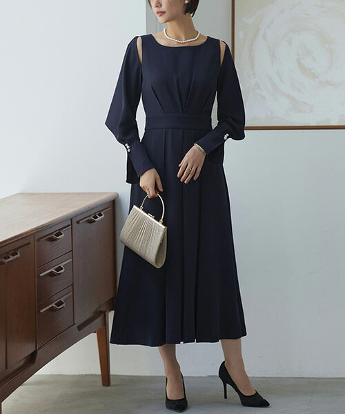 レディース パーティードレス 結婚式 お呼ばれドレス ロングワンピース プリーツスカート 上品 きれいめ ミセス セレモニー フォーマルドレス 袖あり ママスーツ 七五三 入学入園式 卒業卒園式 披露宴 ストレッチ 即日発送 プレゼント ギフト
