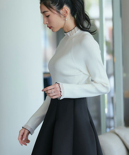 【洗える】レディース ニットトップス リブニット プルオーバー セーター 長袖 シアートップス 透け感 オフィスカジュアル 仕事服 通勤 ミセス 春 秋 冬 白 黒 女性 服装 上品 きれいめ 大人かわいい タートルネック ちくちくしない 即日発送 プレゼント ギフト