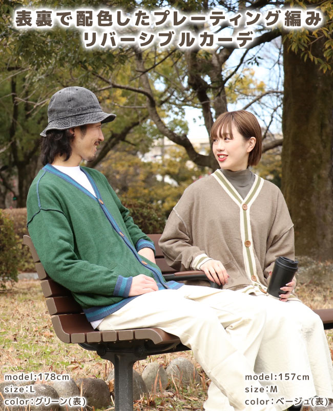 【ブランド直営】ひっくり ニット カーデ(メンズ ユニセックス レディース カーディガン 長袖 リバーシブル 2way 男女兼用 プレーティング レトロ 刺繍 ポケット お洒落 デート カジュアル パパ ママ 春 秋)KRIFF MAYERクリフメイヤー【2024SS】