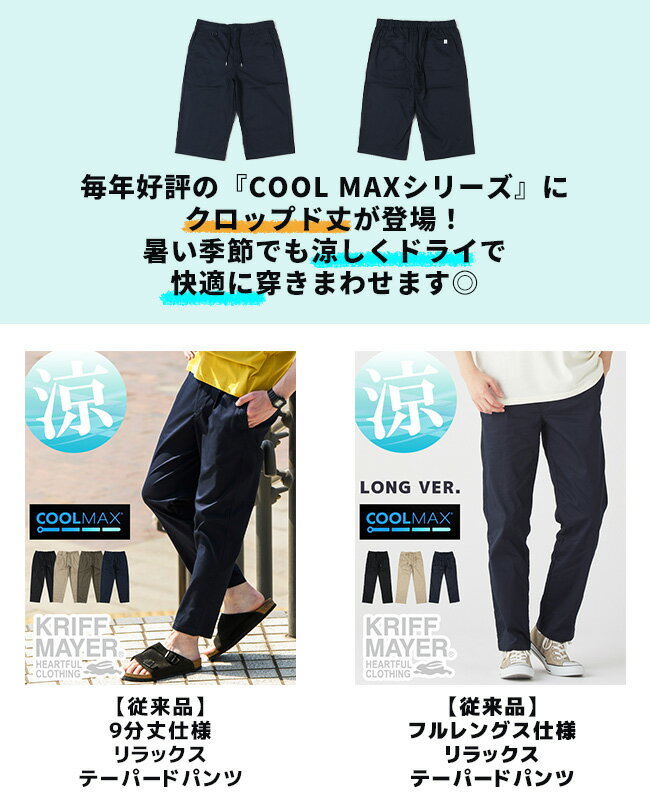 【ブランド直営】《WEB限定》COOL MAX クロップドパンツ(メンズ ボトムス 7分丈 半端丈 膝下 ひざ下 ドライ 吸水速乾 イージーパンツ ウエストゴム 腰紐 クールマックス 無地 カジュアル 夏)KRIFF MAYERクリフメイヤー【2024SS】