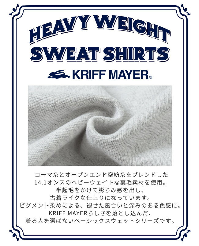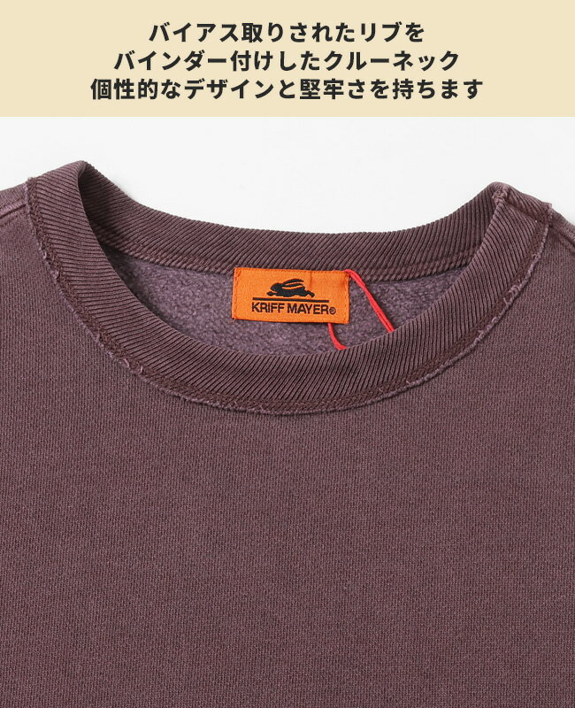 【ブランド直営】ヘビーウェイトピグメントクルー(メンズ ユニセックス 長袖 スウェット 裏起毛 裏微起毛 古着風 ユーズド風 無地 綿 コットン100% おしゃれ カジュアル アメカジ 春 秋 冬)KRIFF MAYERクリフメイヤー【2024FW】