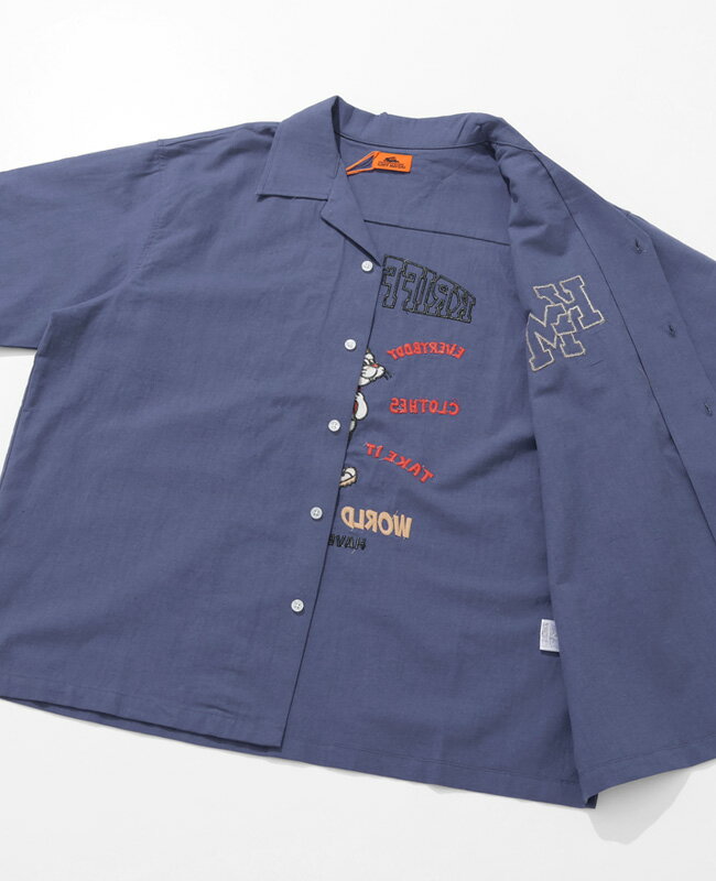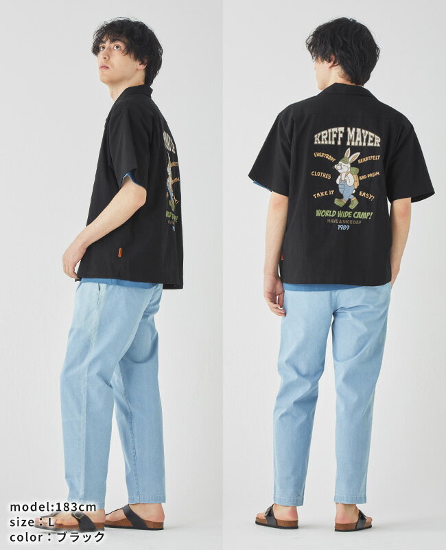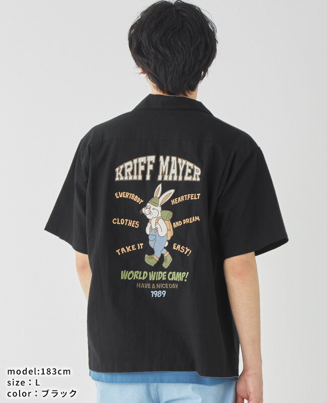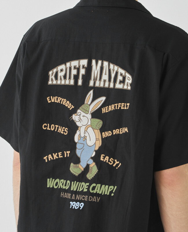 【ブランド直営】クリフラビット 刺繍 開襟 シャツ(メンズ ユニセックス 半袖 オープンカラー コットン リネン 麻 ゆったり ワイド オーバーサイズ カジュアル アメカジ アウトドア キャンプ 夏)KRIFF MAYERクリフメイヤー【2025SS】