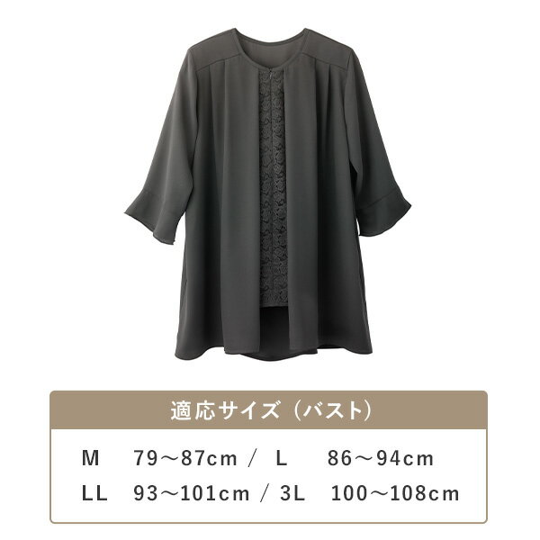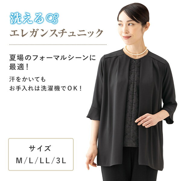 洗える エレガンスチュニック ブラックフォーマル M~3L 上品 カットソー トップス ブラウス 7分袖 重ね着風 結婚式 卒業式 入学式 フォーマル 黒 おしゃれ 洗濯機OK メイダイ 【送料無料】