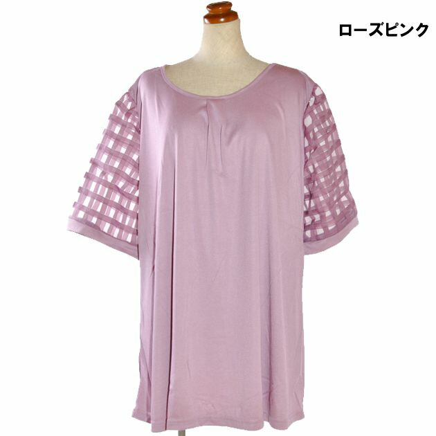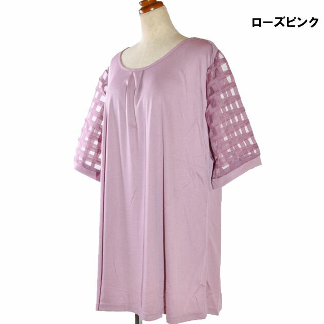 クールファイバー チュニック レディース トップス プルオーバー 半袖 5分袖 清涼 ゆったり 体型カバー 丸首 無地 カットソー 大きいサイズ 動きやすい 大人 普段着 通勤 お散歩 春 夏 シンプル ローズ ピンク グレー ブルー 紺 ブラック 黒 3L 4L 5L 77181027