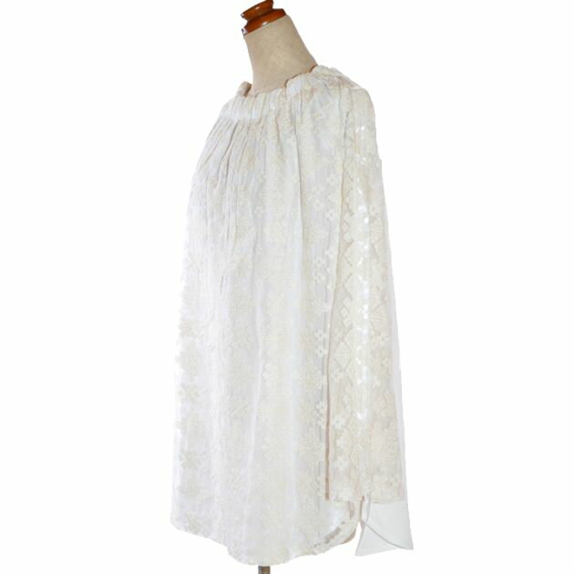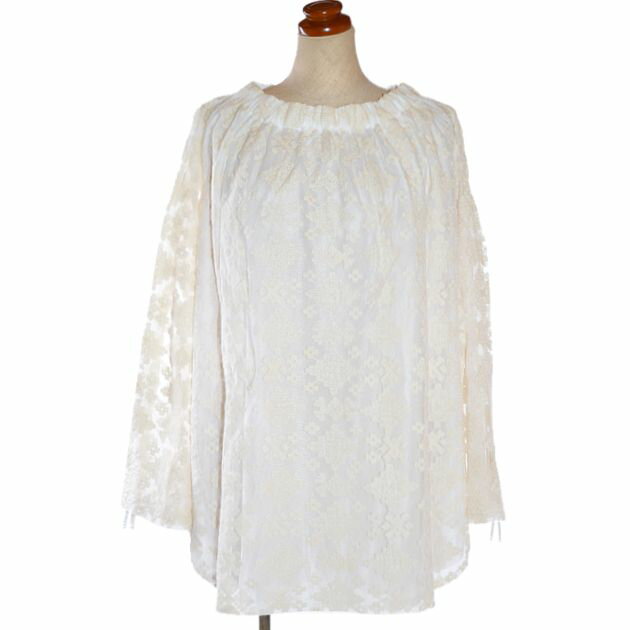チュールレース チュニック 訳有り アウトレット ネームカット レディース プルオーバー スモック ゆったり ラグランスリーブ 長袖 透け感 レース 袖コンシャス エレガント 柔らか 春 夏 春服 夏服 おしゃれ お出かけ リゾート オフホワイト M L 640673