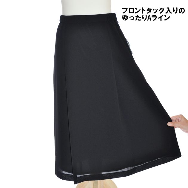 ブラックフォーマル Aラインスカート レディース SORITEAL ロングスカート フロントタック 裏地付き ウエストゴム ゆったり 大きいサイズ 簡易包装 ハンガー無し 喪服 礼服 葬儀 葬式 法事 法要 礼装 冠婚葬祭 春 夏 秋 シンプル ブラック 黒 M L LL 3L 72811