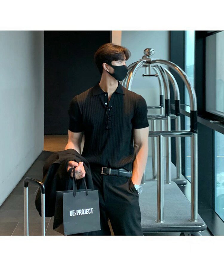 ニットポロ リブニット メンズ ゴルフシャツ サマーニット ポロシャツ トップス カジュアル 半袖ニット ゆったり 半袖 無地 薄手 ポロ キレイめ レイヤード 夏 夏服 ファッション
