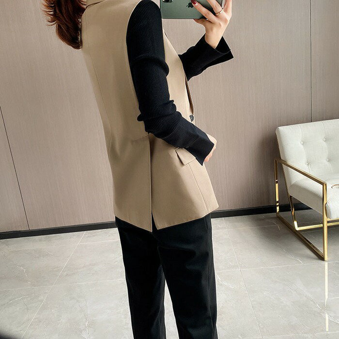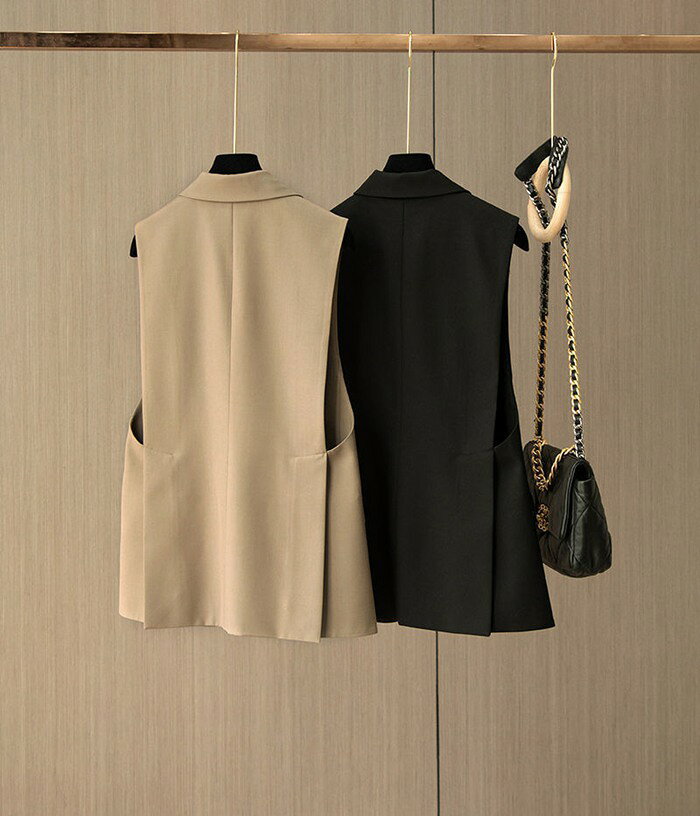 ジレ レディース フォーマル 前開き ベスト ロングベスト チュニック丈 テーラード テーラードベスト スーツベスト 羽織り ノースリーブ 大人 無地 きれいめ ビジネス 通勤 お洒落 デイリー