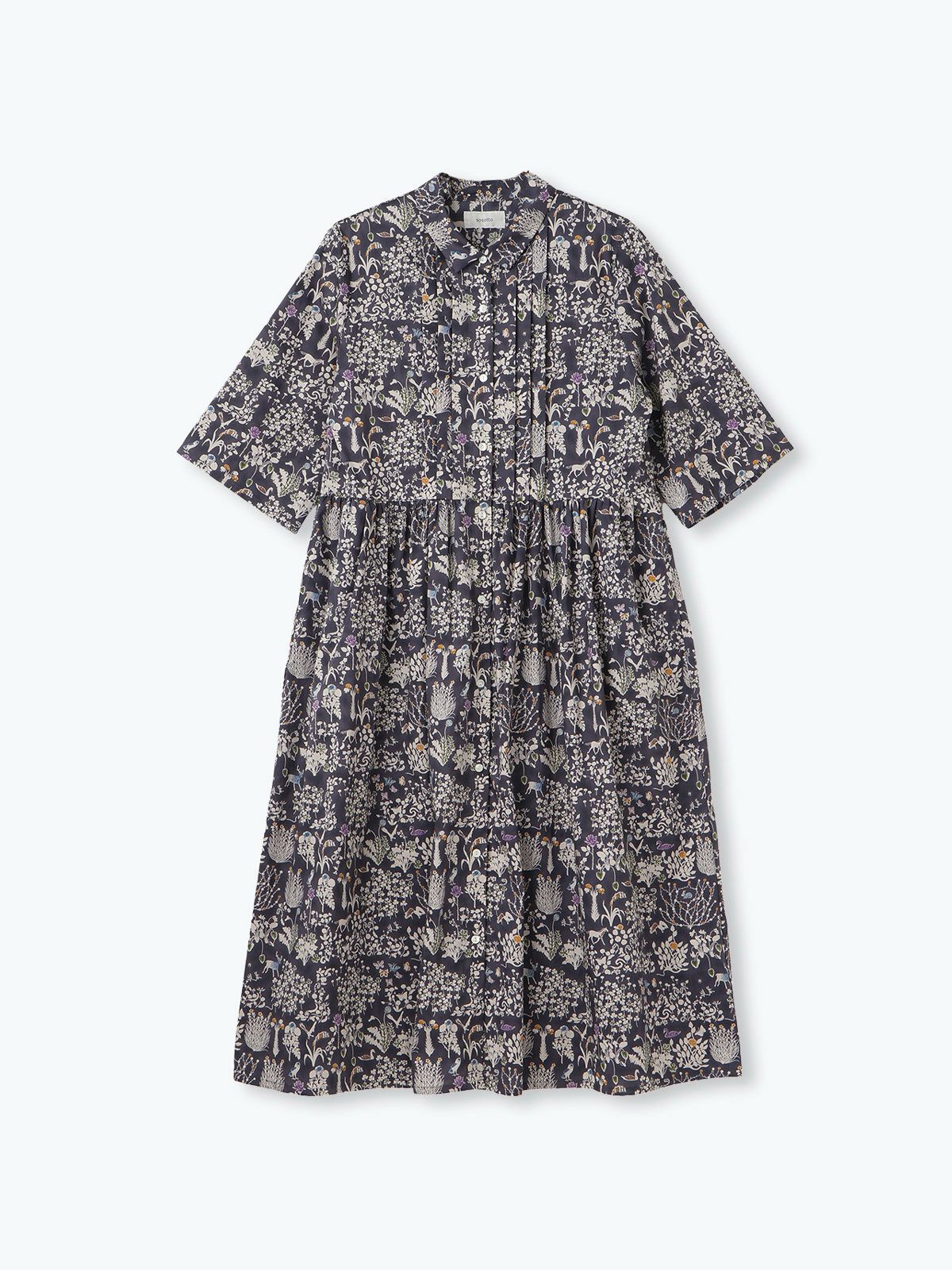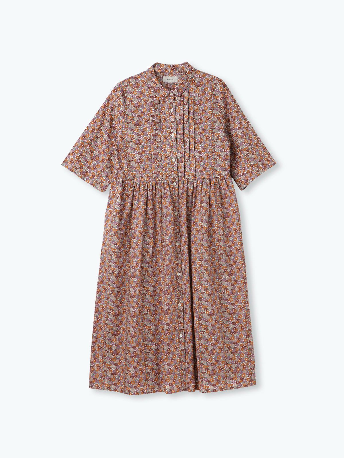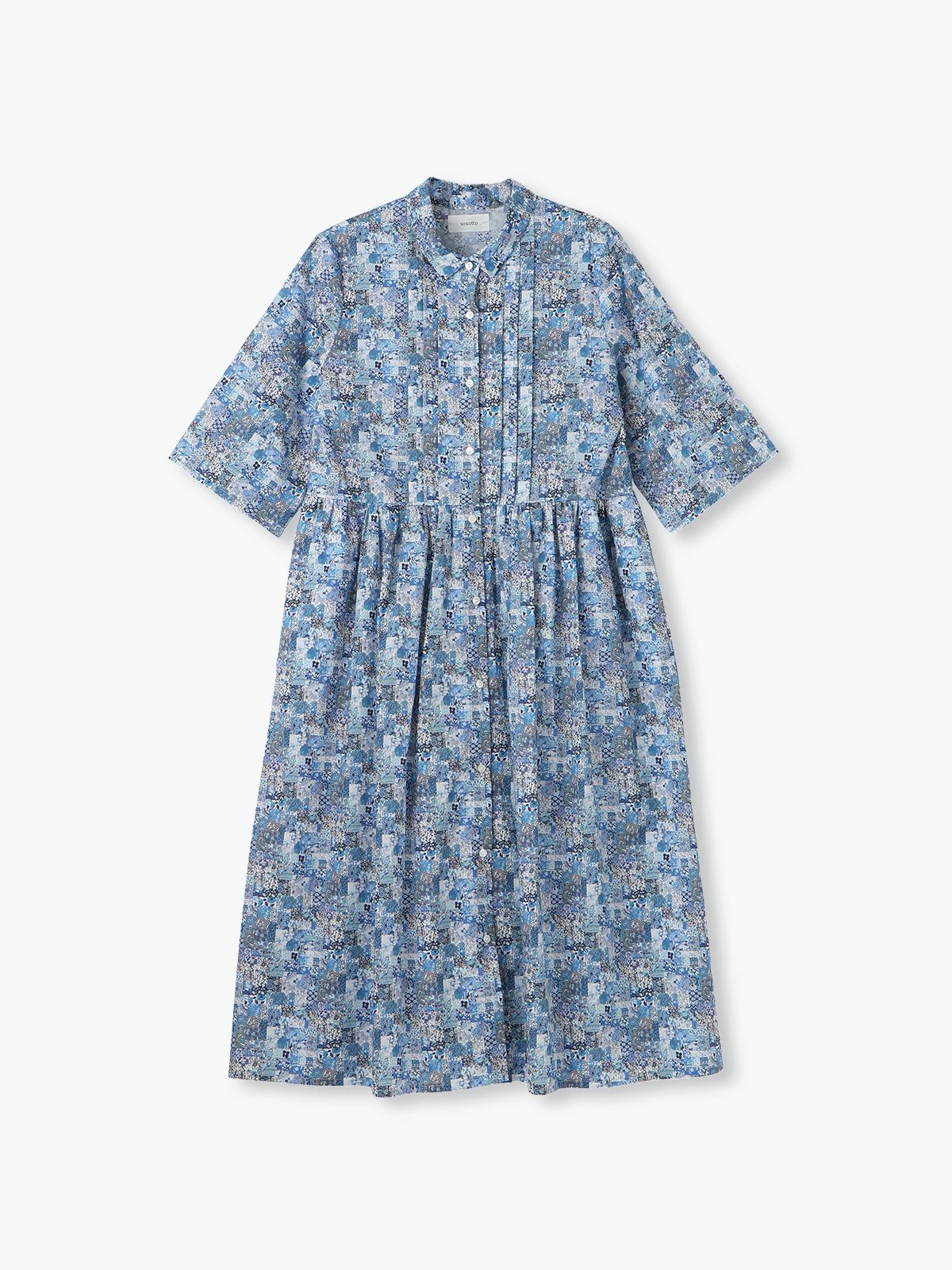 【15%オフ・クーポン対象】sosotto ソソット ワンピース リバティ プリント ピンタック チビ襟 ギャザー 6分袖 日本製 タナ ローン 綿100% 2025年春夏の新色入荷
