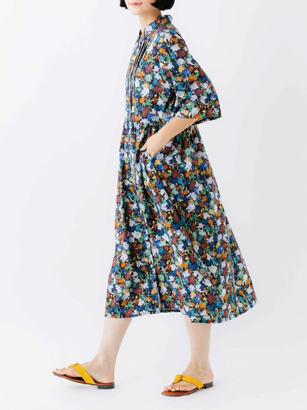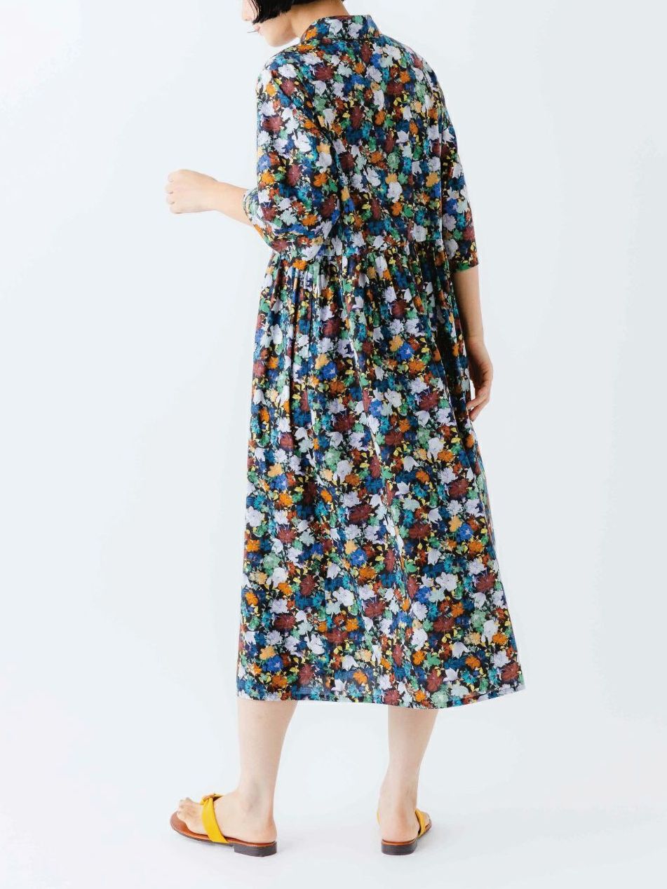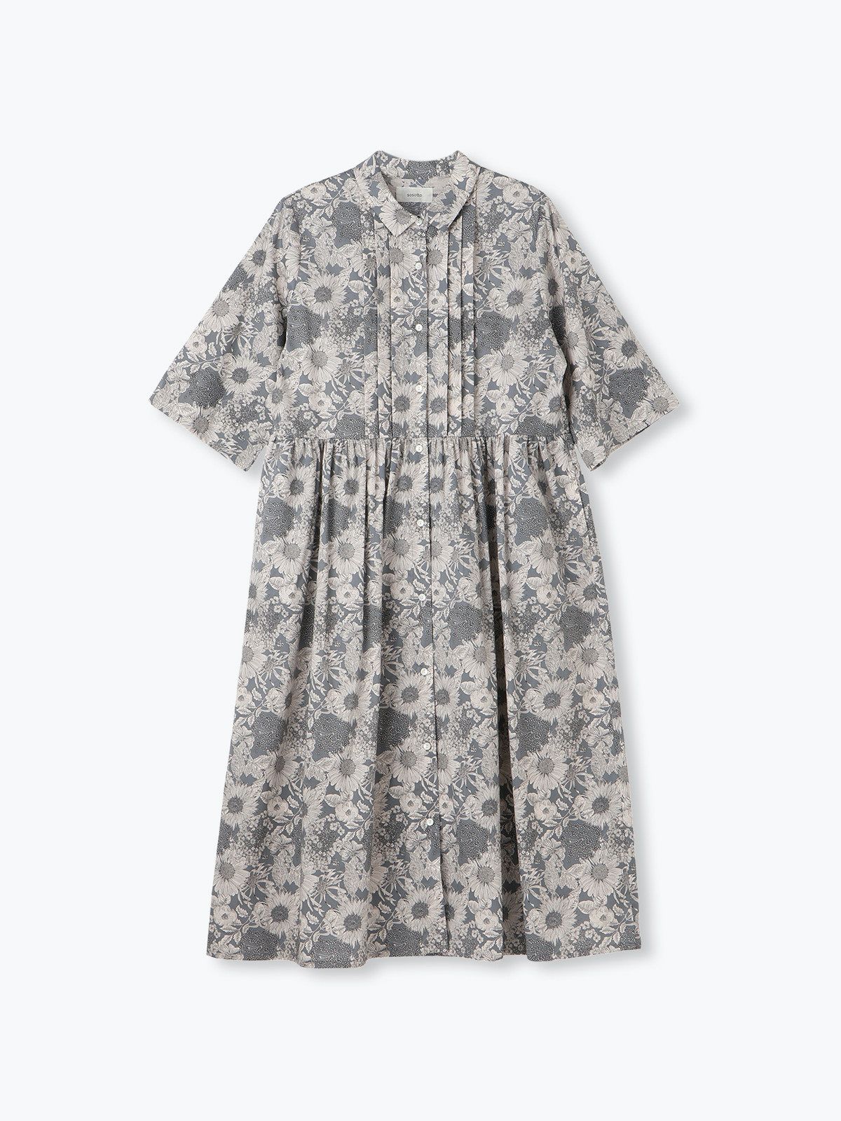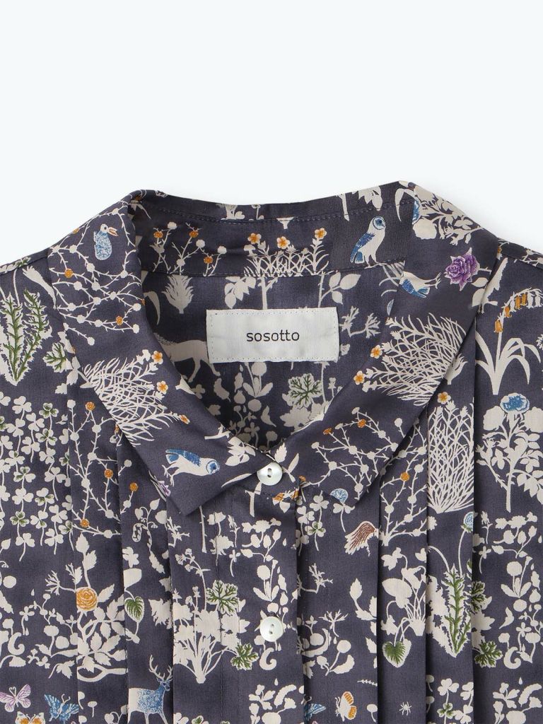 【15%オフ・クーポン対象】sosotto ソソット ワンピース リバティ プリント ピンタック チビ襟 ギャザー 6分袖 日本製 タナ ローン 綿100% 2025年春夏の新色入荷