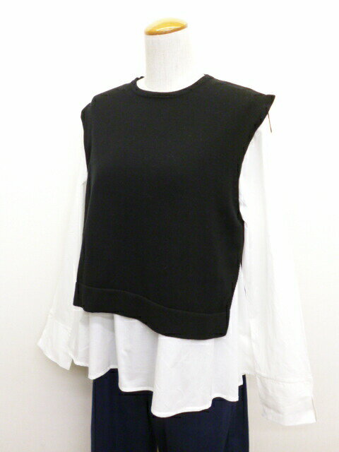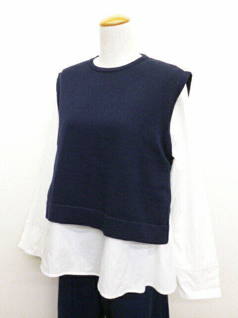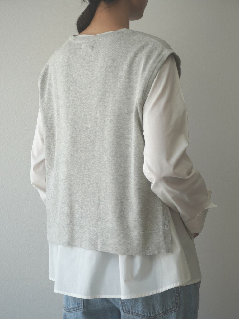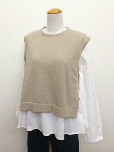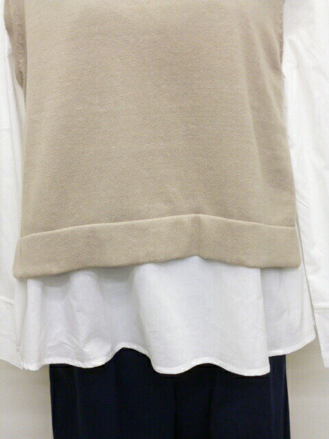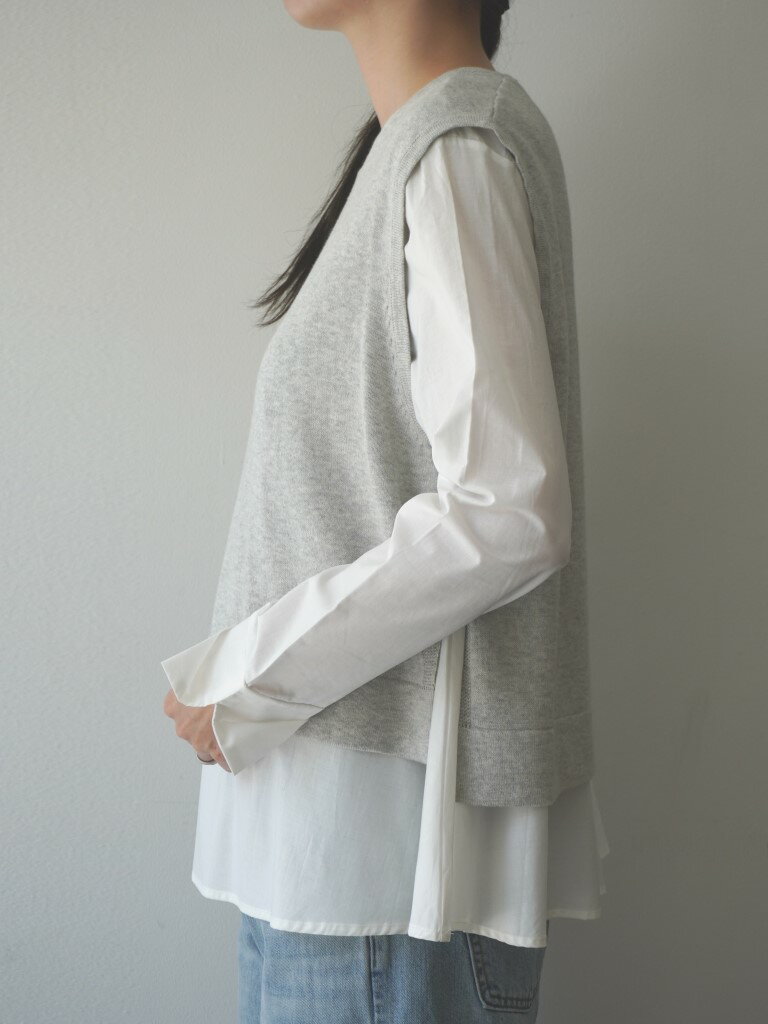 【50%オフ・セール】マオメイド mao made ベスト ニット ショート 丈 インナーセット ブラウス 付き クルーネック サイド スリット ソフト コットン 綿 100% レディース 2024年秋冬物