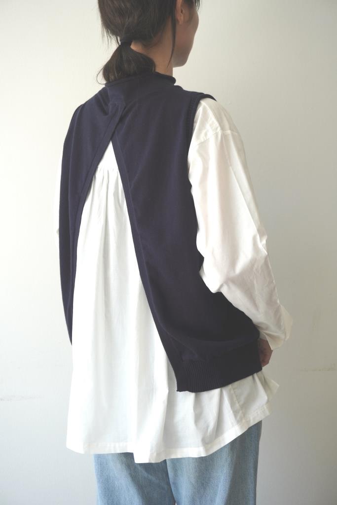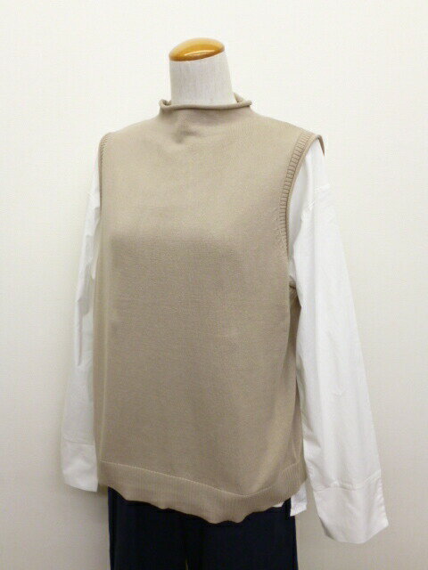 【15%オフ・クーポン対象】マオメイド mao made ベスト ニット インナーセット ブラウス 付き 後ろ開き バックオープン モックネック ソフト コットン 綿 100% レディース 2024年秋冬物