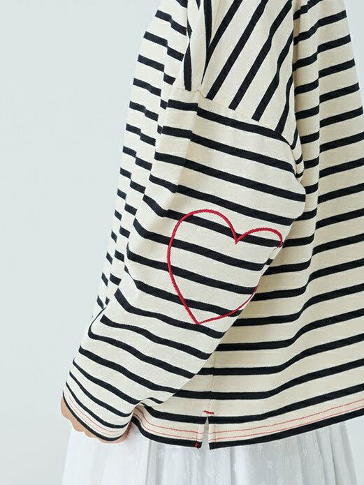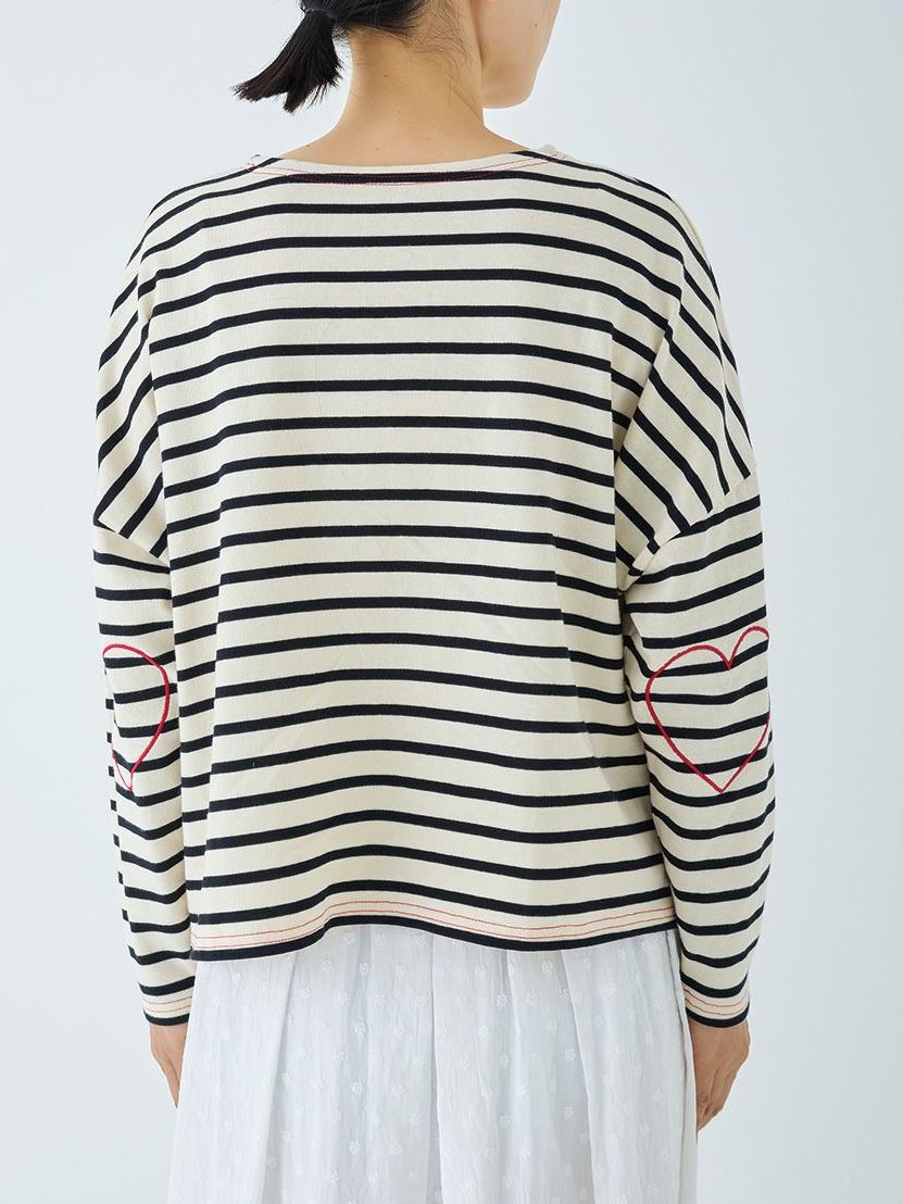 【14%オフ・クーポン対象】PONT DE CHALONS ポンデシャロン カットソー ロンT ロング Tシャツ ボーダー ハート ステッチ パッチ 風 プルオーバー ボートネック 綿 100% コットン レディース 2025年春夏物