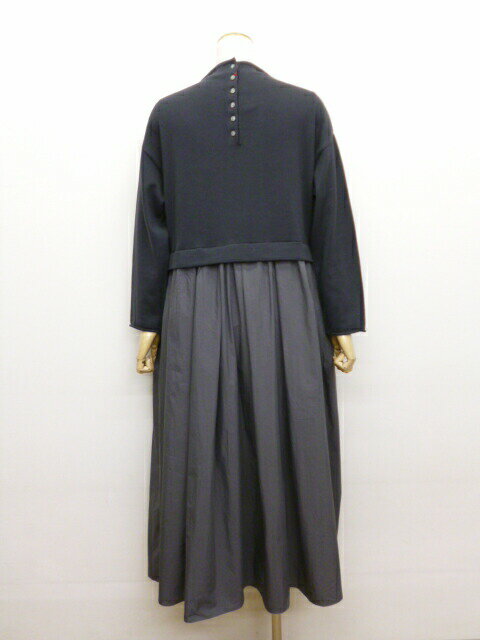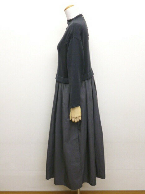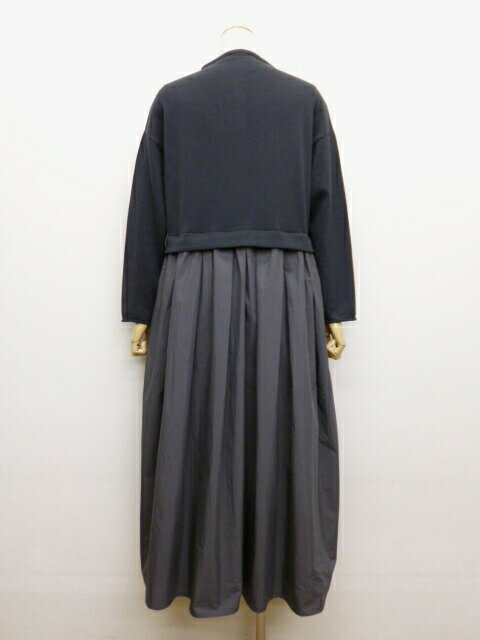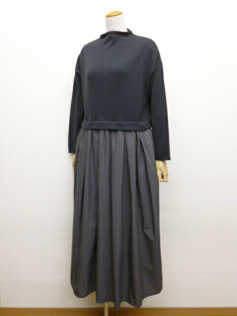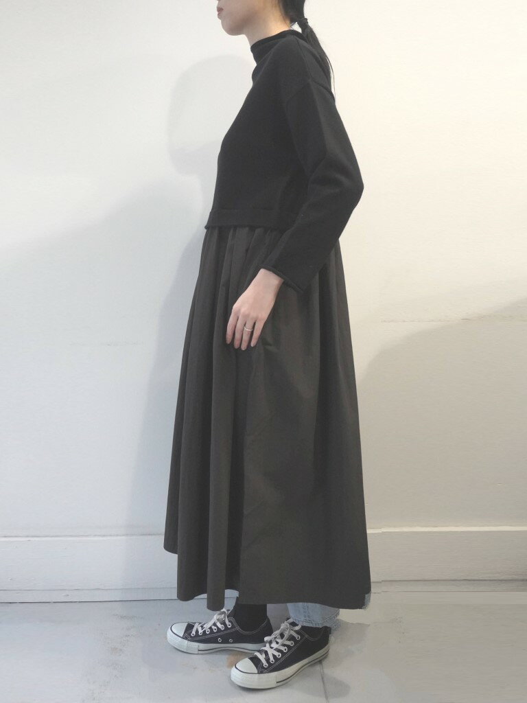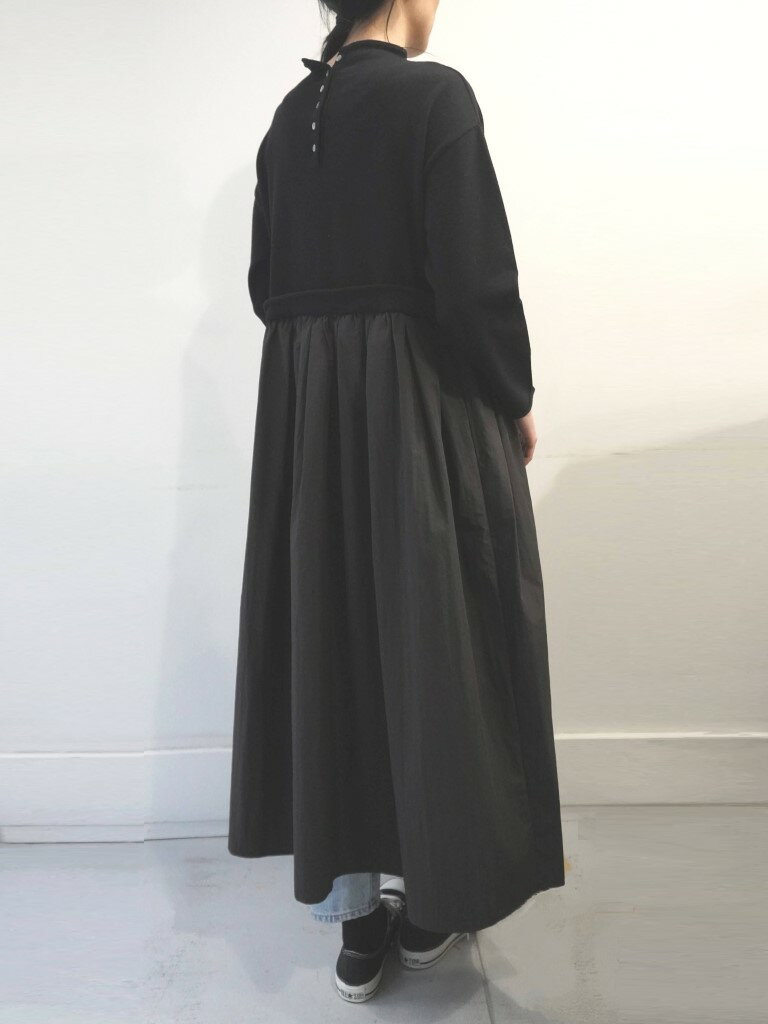 【15%オフ・クーポン対象】マオメイド mao made ワンピース ロング モックネック ドッキング ニット やわらか コットン タフタ 異素材 切り替え 前後 2WAY 2025年春夏物