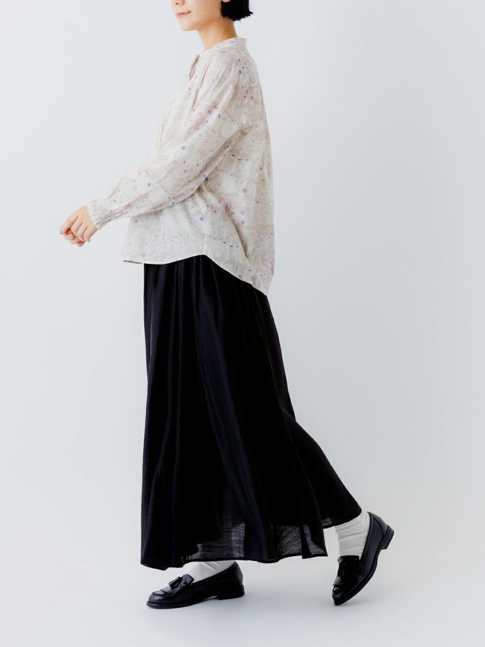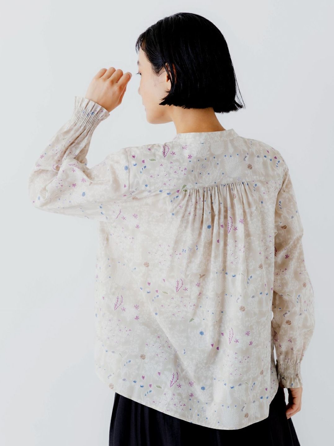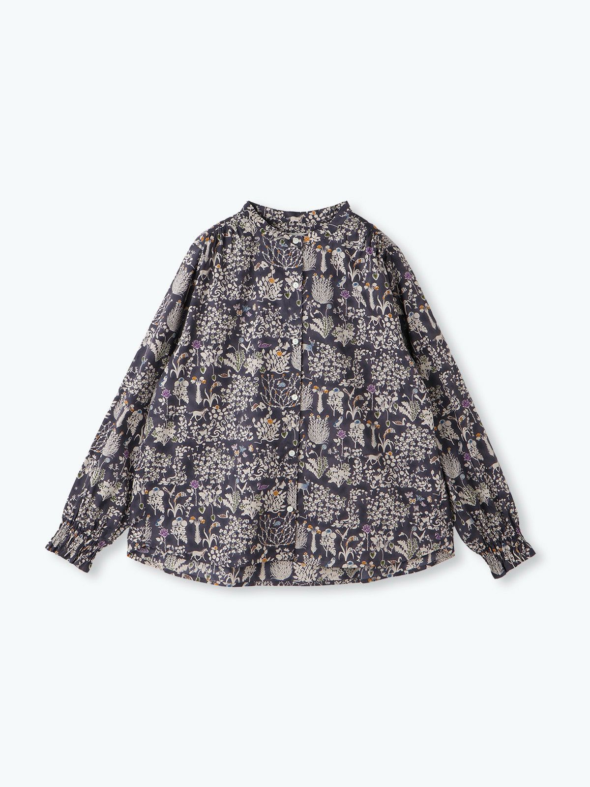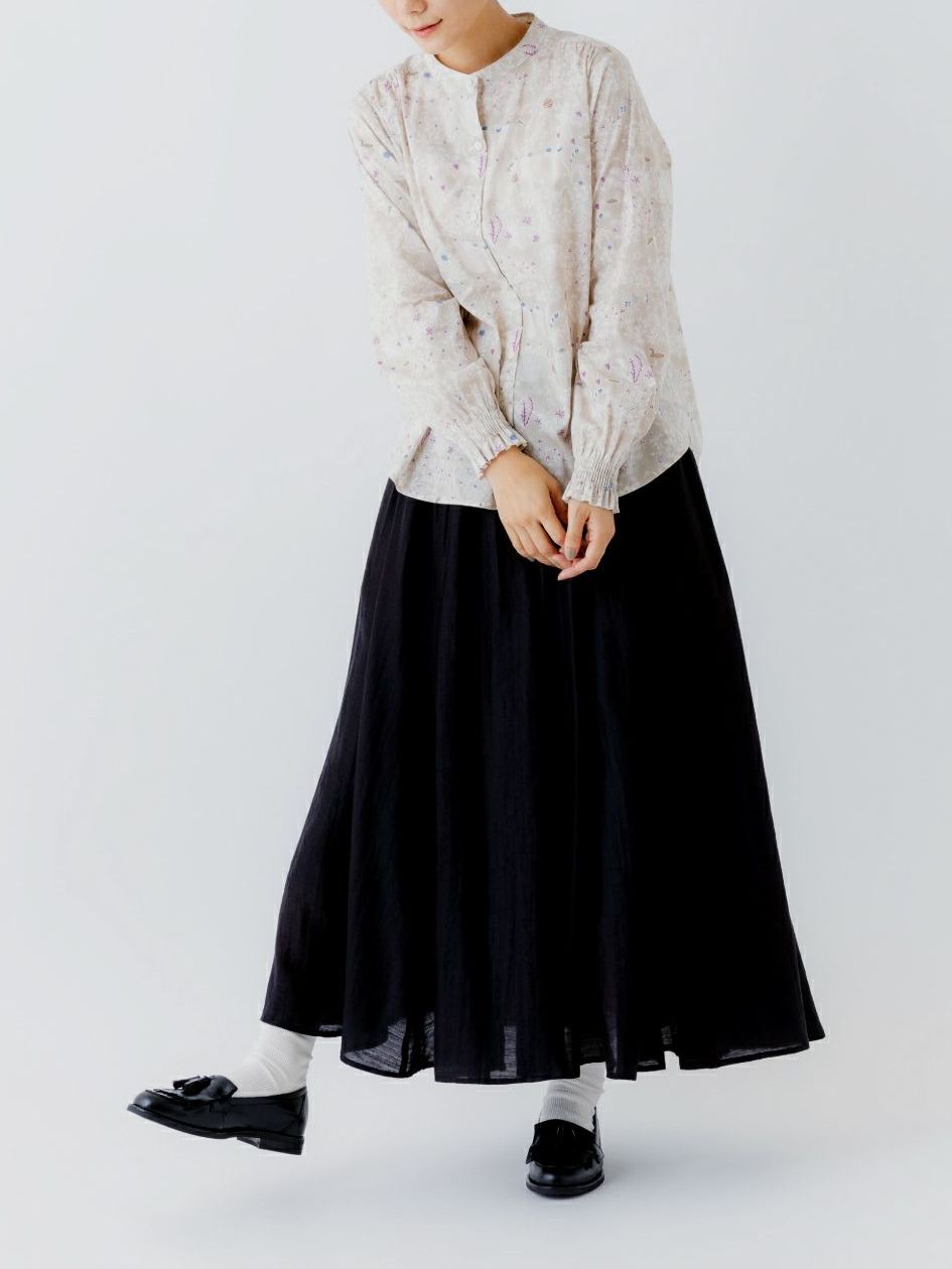【14%オフ・クーポン対象】sosotto ソソット ブラウス シャツ リバティ プリント バンドカラー スタンドカラー 袖 シャーリング 長袖 タナローン 綿 100% 日本製 2025年春夏物