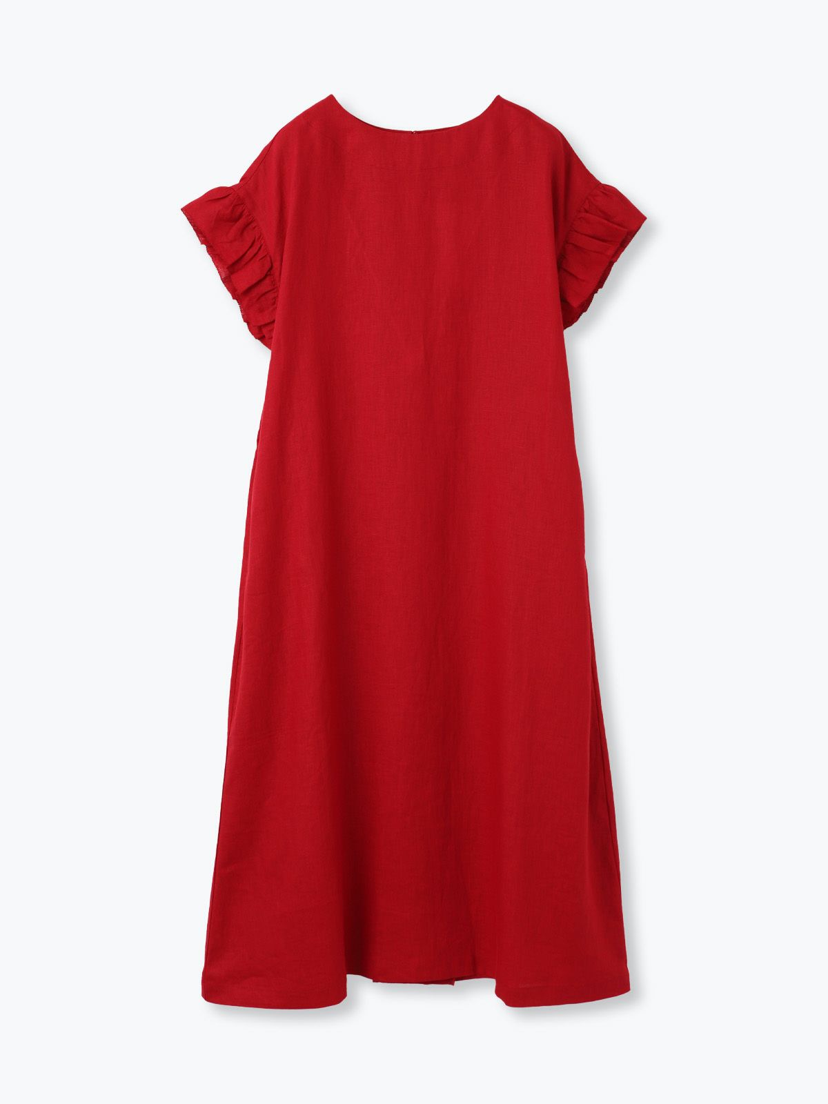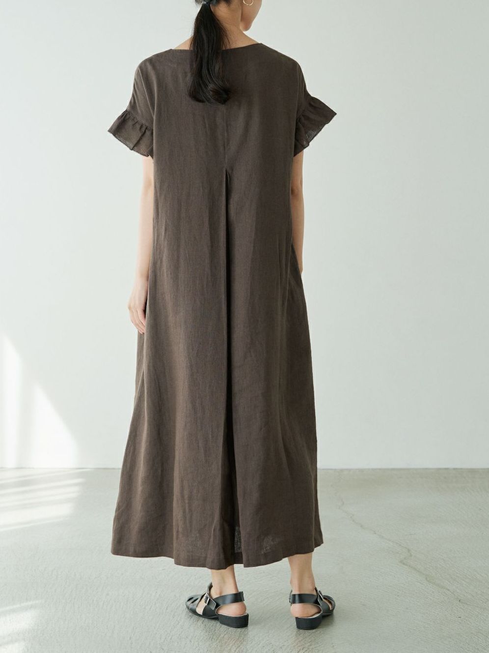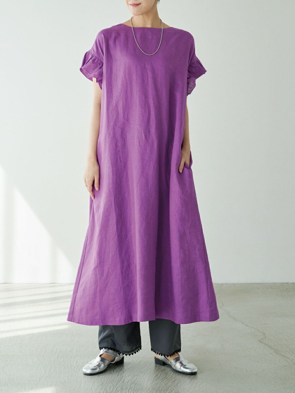 【14%オフ・クーポン対象】PONT DE CHALONS ポンデシャロン ワンピース ロング フリル 袖 半袖 フレアー リネン 麻 100% 平織り 2025年春夏物