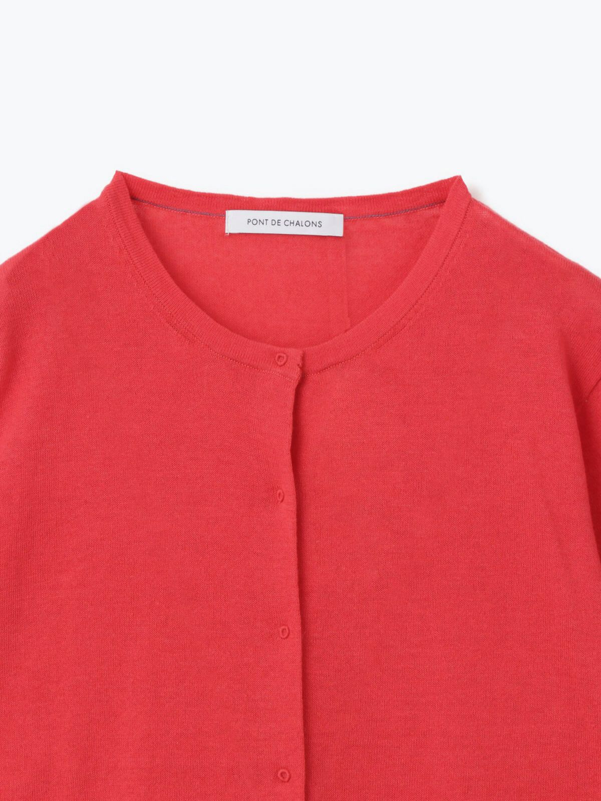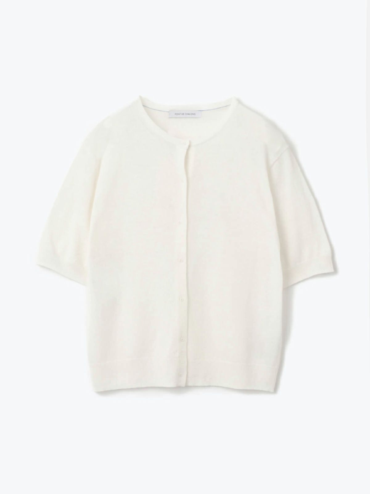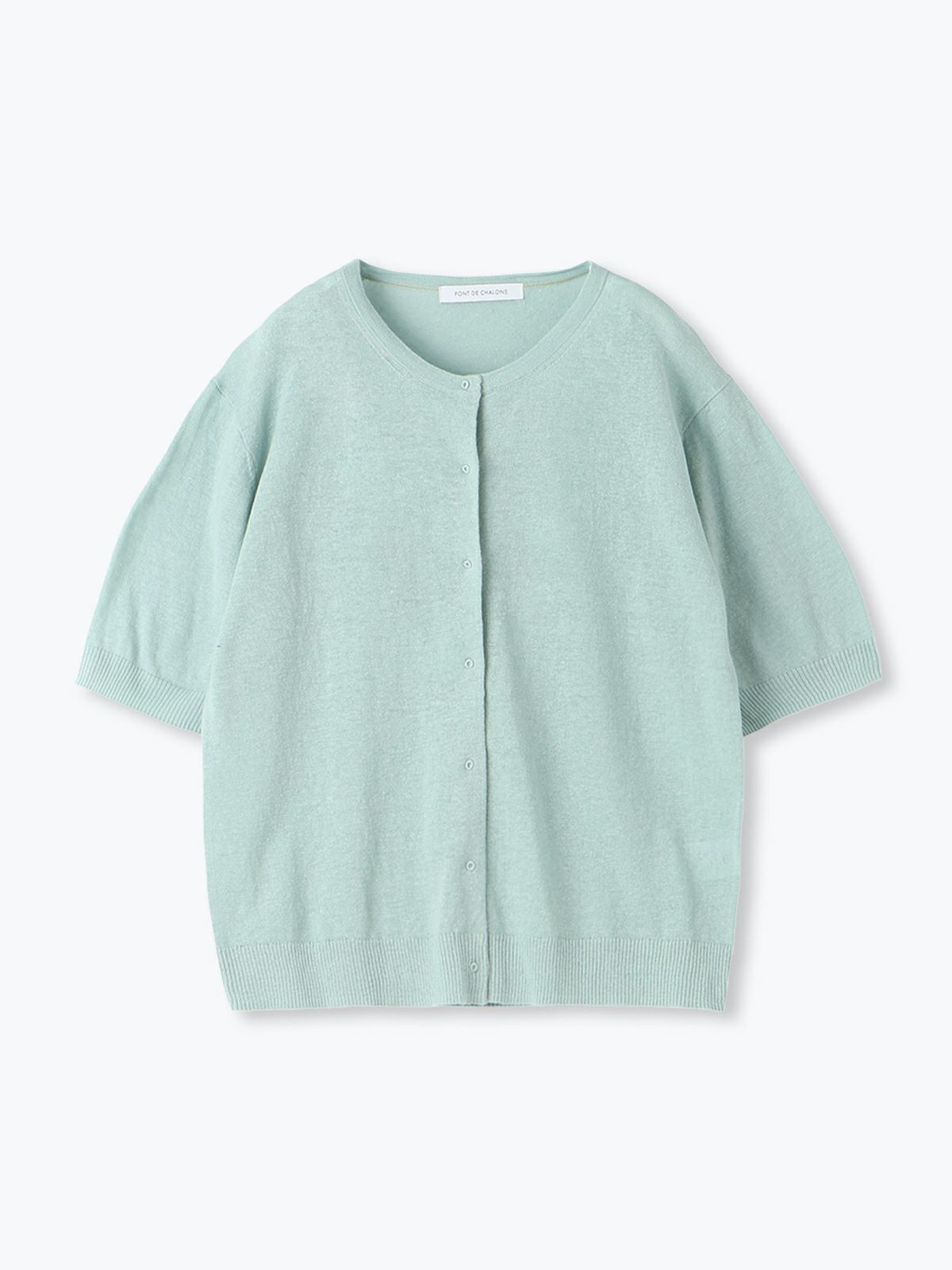 【14%オフ・クーポン対象】PONT DE CHALONS ポンデシャロン カーディガン ニット 5分袖 半袖 クルーネック 刺繍 ボタン 麻 綿 リネン コットン レディース 2025年春夏の新色入荷
