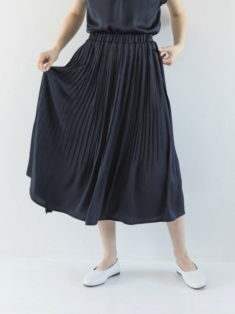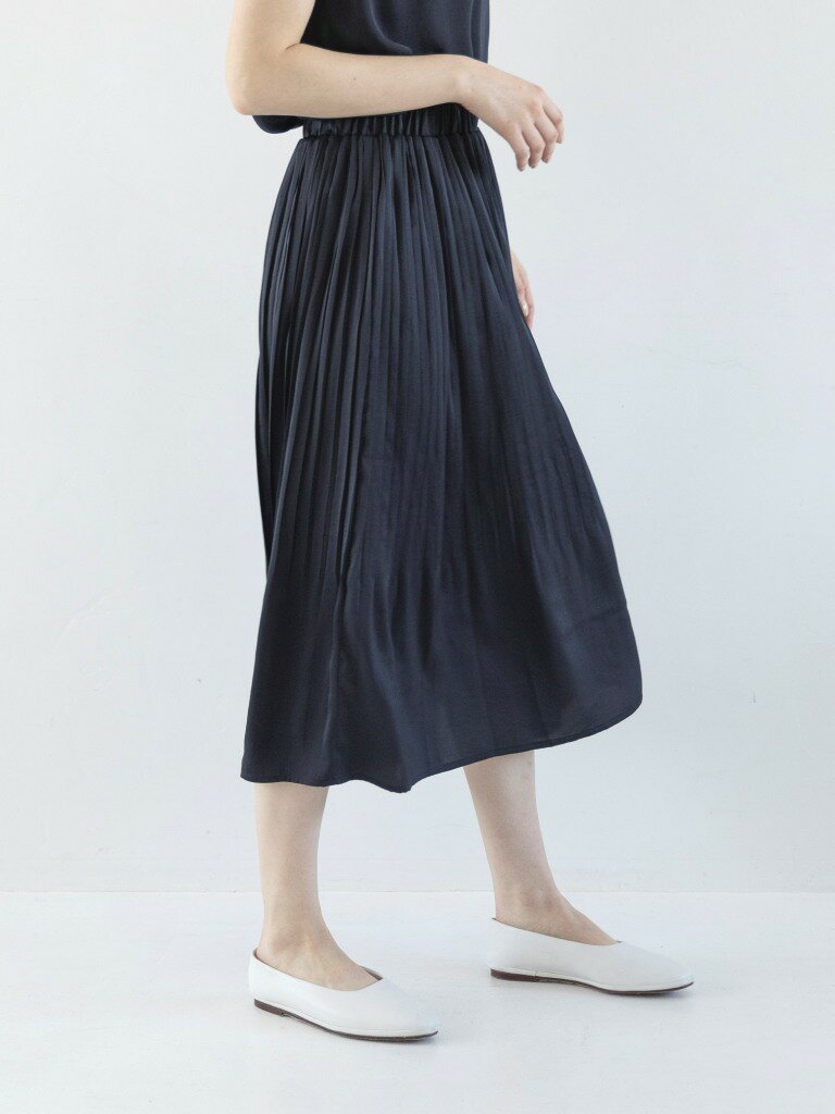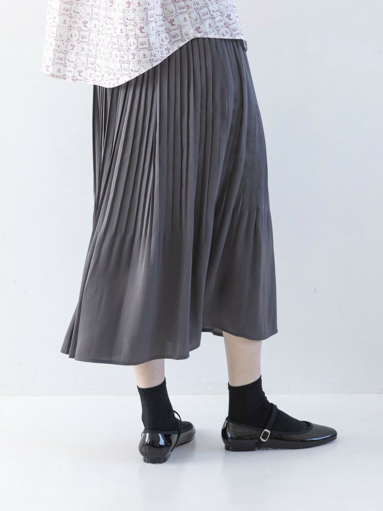 【15%オフ・クーポン対象】sosotto ソソット スカート ミモレ丈 アンティーク サテン 消し プリーツ 2025年春夏物