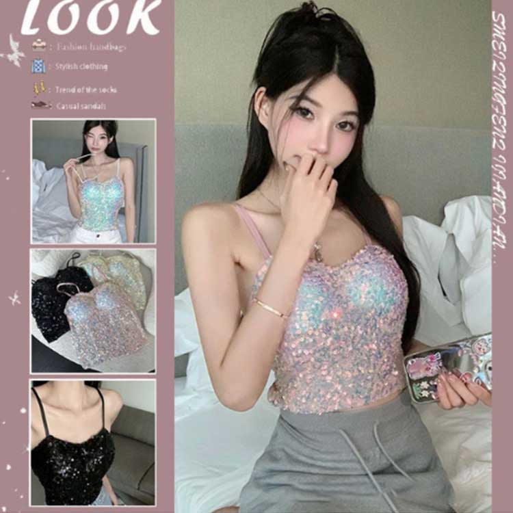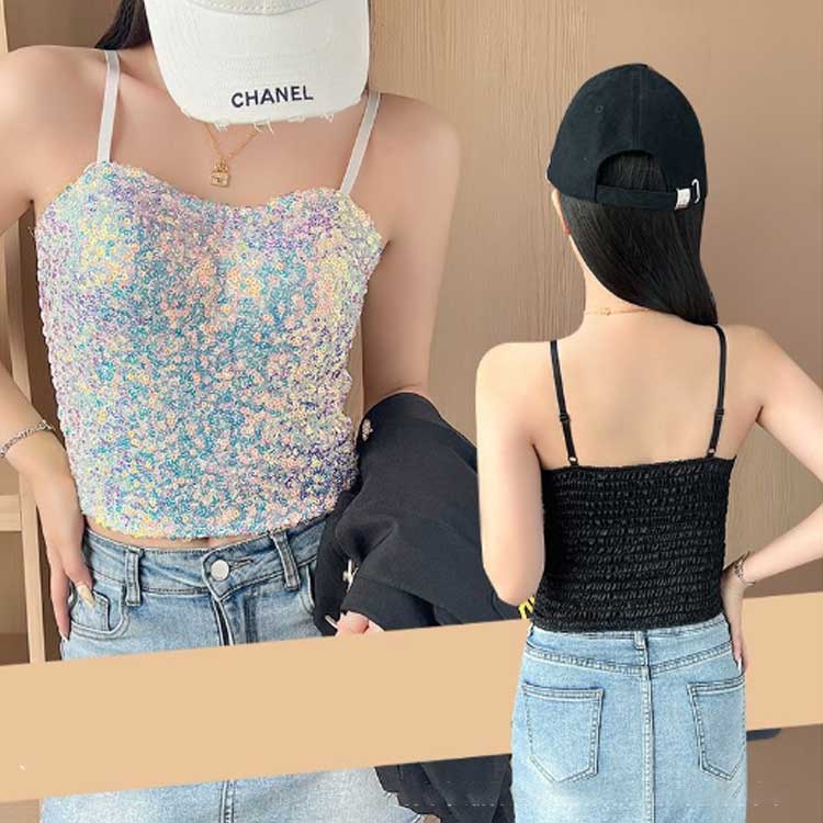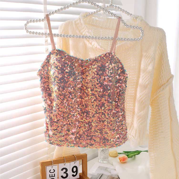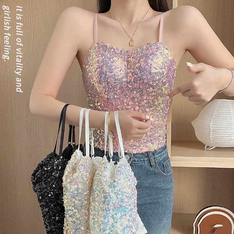 キャミ キラキラ ブラトップ カップ付き 大きいサイズ 下着 インナー パッド付き レディース キラキラ キャミソール カップ付きキャミソール ショート丈 ランジェリー ストレッチ 伸縮性 通気性 締め付けない 肌着 スパンコール