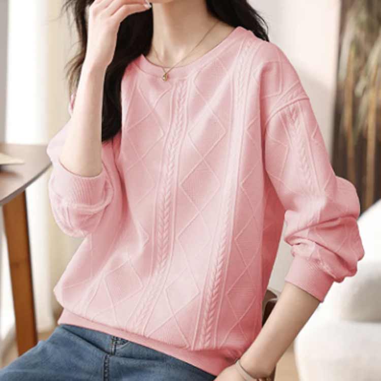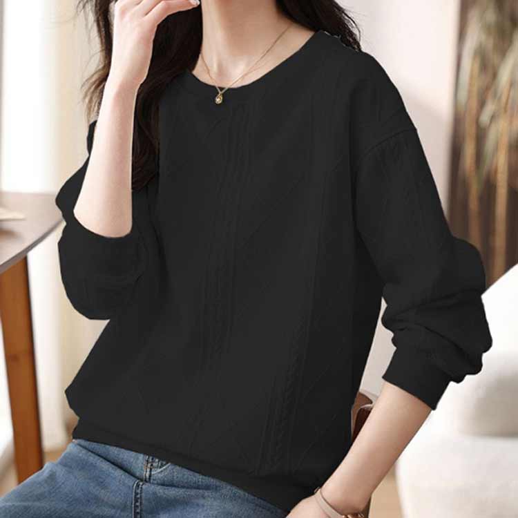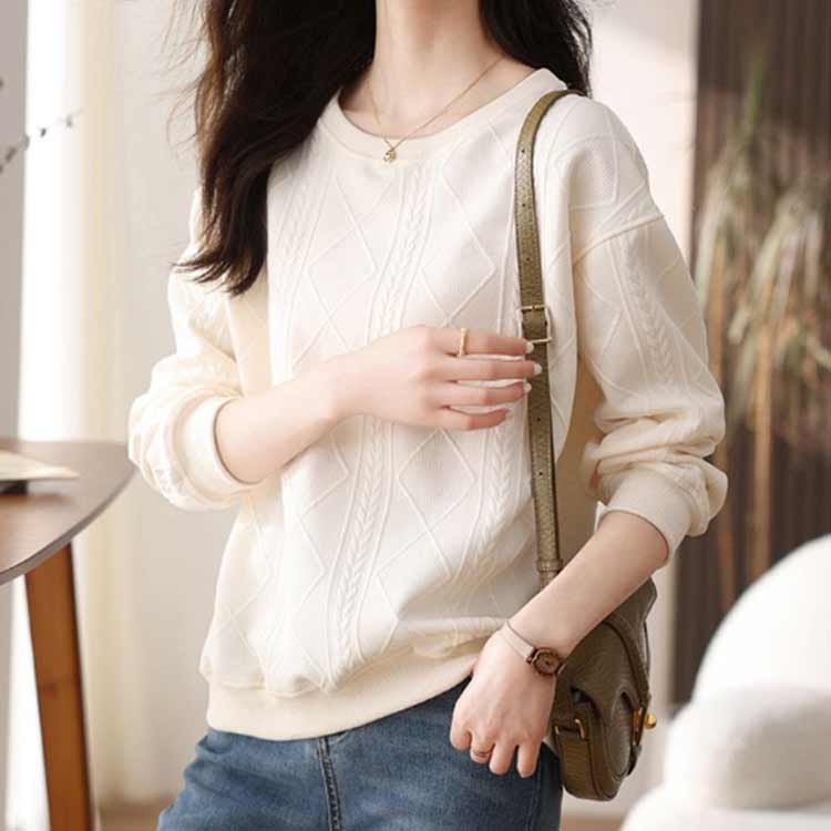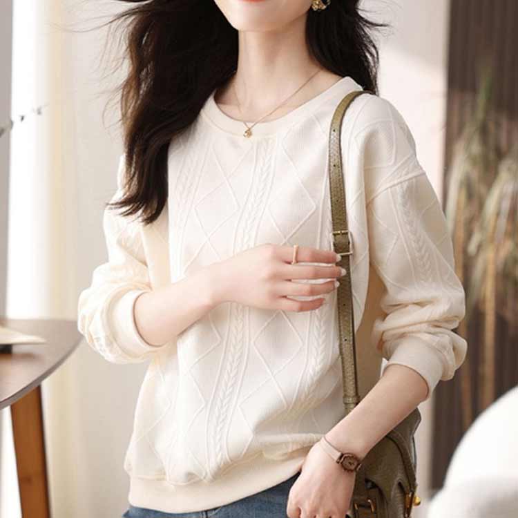 ロンT レディース 無地 ケーブル柄 トレーナー カットソー トップス エンボス加工 長袖 クルーネック 長袖トレーナー 普段着 プルオーバー スウェット お洒落 パーカー カジュアル 大きいサイズ 着瘦せ 体型カバー 薄手