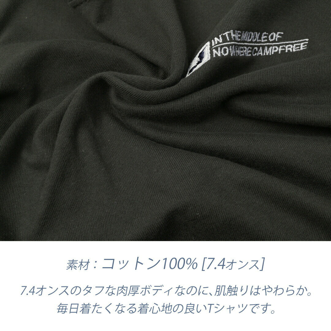Tシャツ メンズ 半袖 CAMPFREE 7.4oz やや 厚手 メール便 送料無料 刺繍 ワンポイント ロゴ グラフィックTシャツ 半そで レディス レディース カレッジロゴ コットン100% 綿100% カジュアル アメカジ 大きいサイズ ティーシャツ ティシャツ 黒 おしゃれ オシャレ 綿100 10557