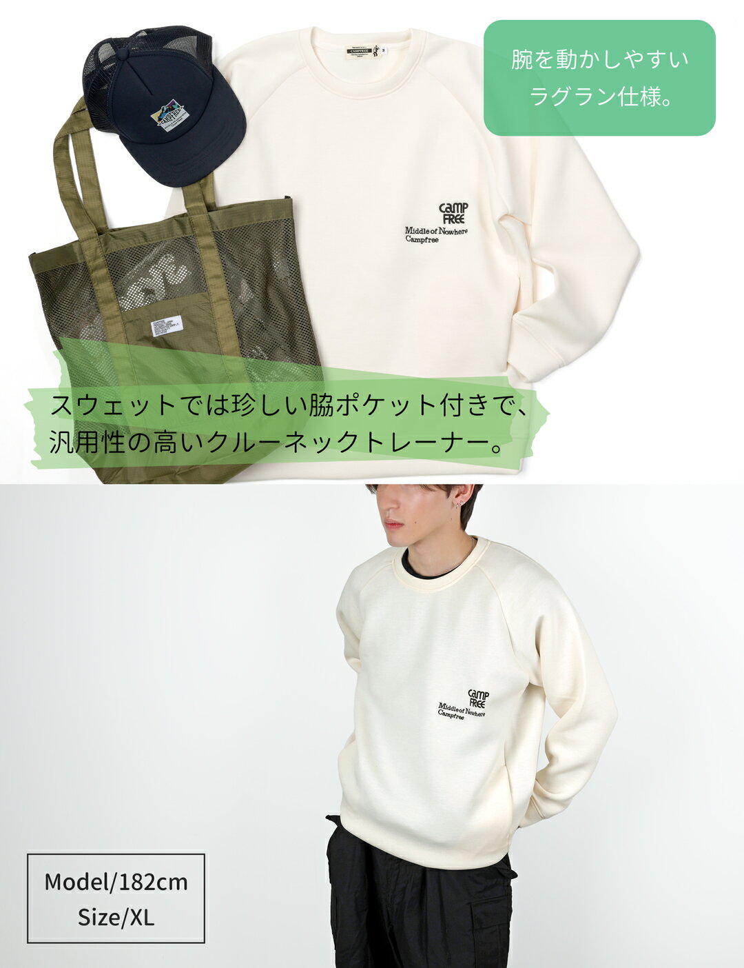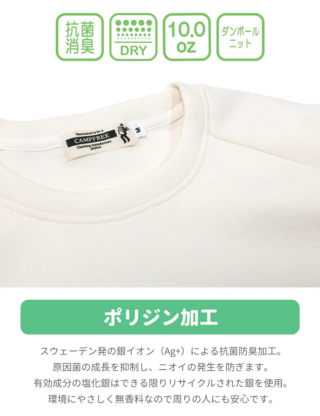 ダンボールニット メンズ トレーナー 軽い CAMPFREE ドライ ストレッチ クルーネックトレーナー ( ポケット付き ) ポリジン加工 抗菌消臭 【送料無料】 ワンポイント 刺しゅう 10オンス ( 大人用 メンズ レディース ) 胸刺繍 刺繍入り スウェット スエット 上 10841