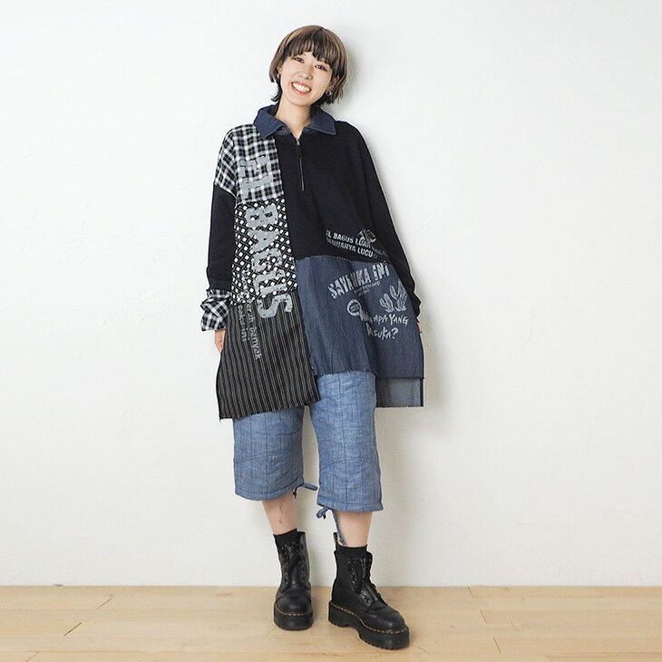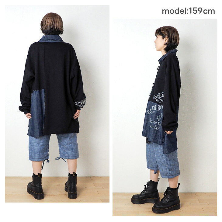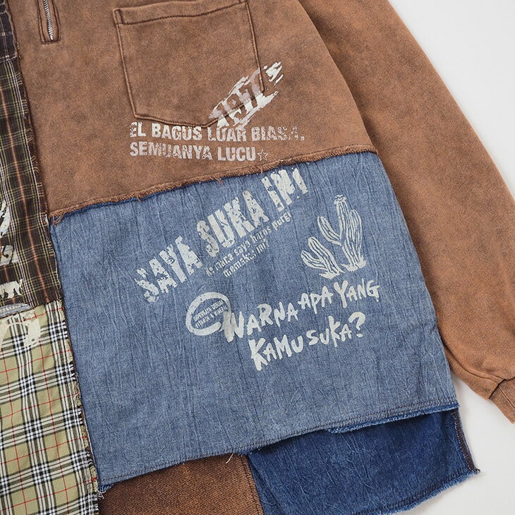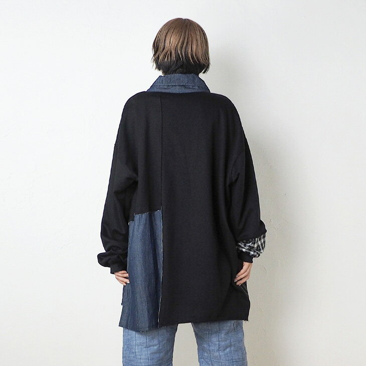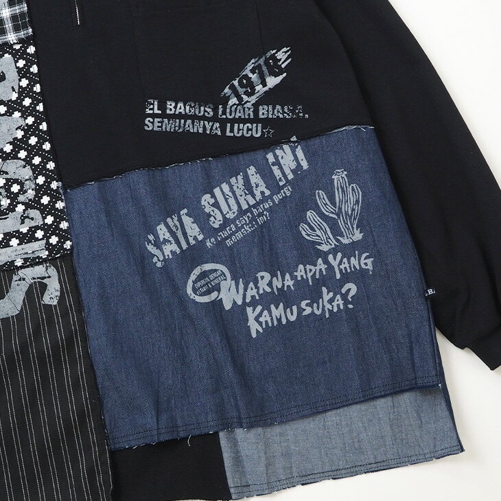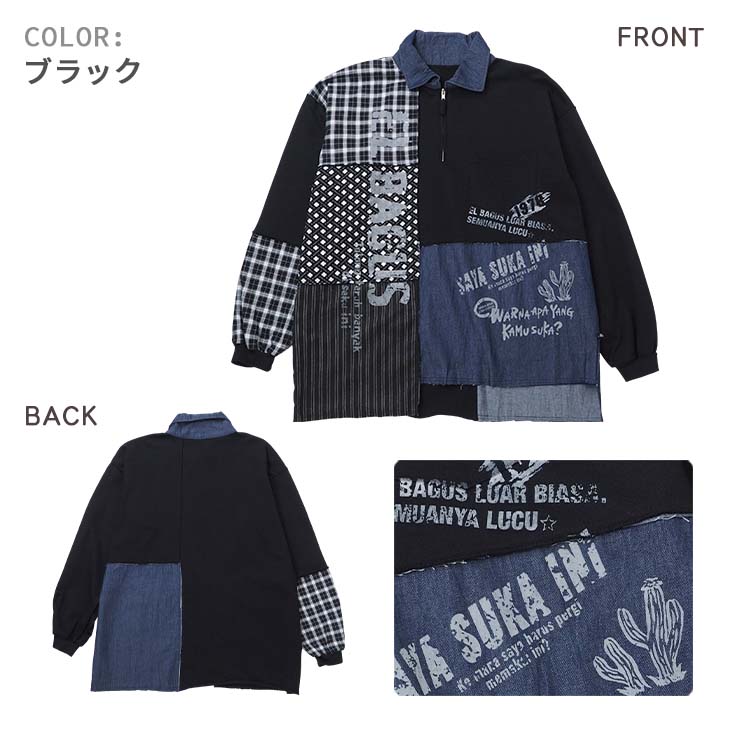 送料無料 EL BAGUS(エルバグース)チェック切り替え襟付きトレーナー レディース トップス 長袖 スウェット 大人 カジュアル ユニセックス メンズ ゆったり 大きい オーバーサイズ 古着系 リメイク風