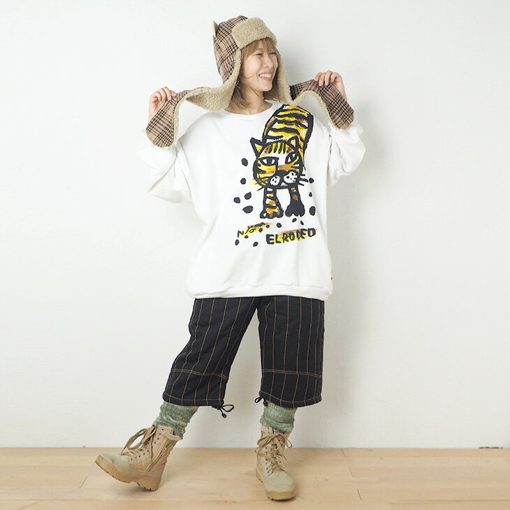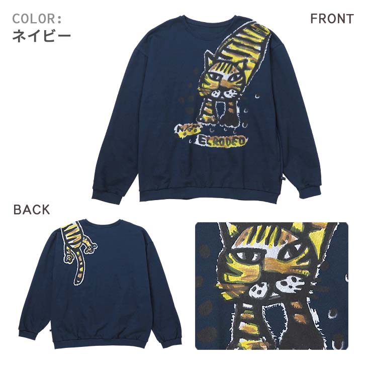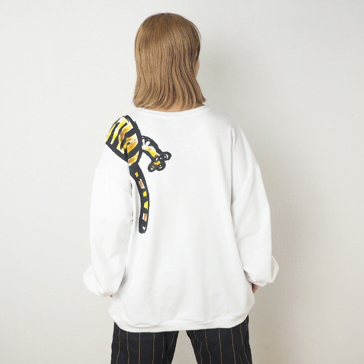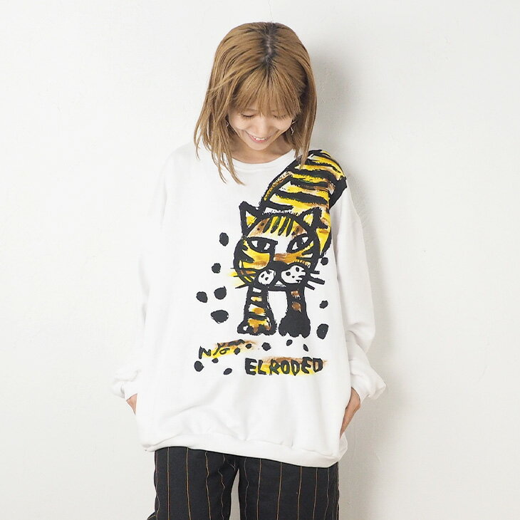 送料無料 肩アニマルプリント トレーナー(トラネコ) レディース スウェット トップス プルオーバー ユニセックス オーバーサイズ ゆったり 大きい 大きめ イラスト 可愛い 猫 ねこ 可愛い カジュアル 大人 個性的ファッション