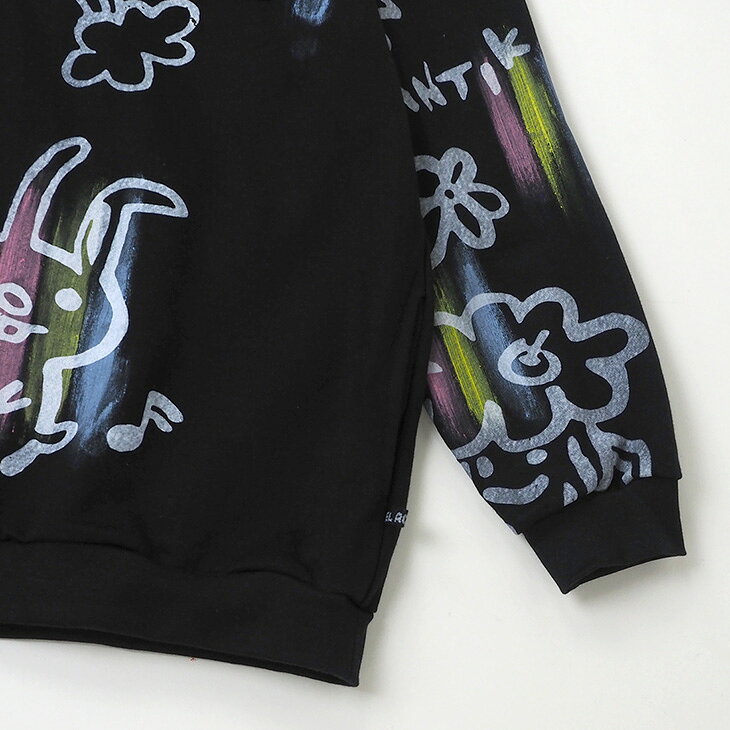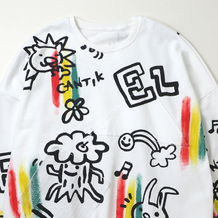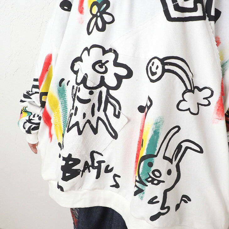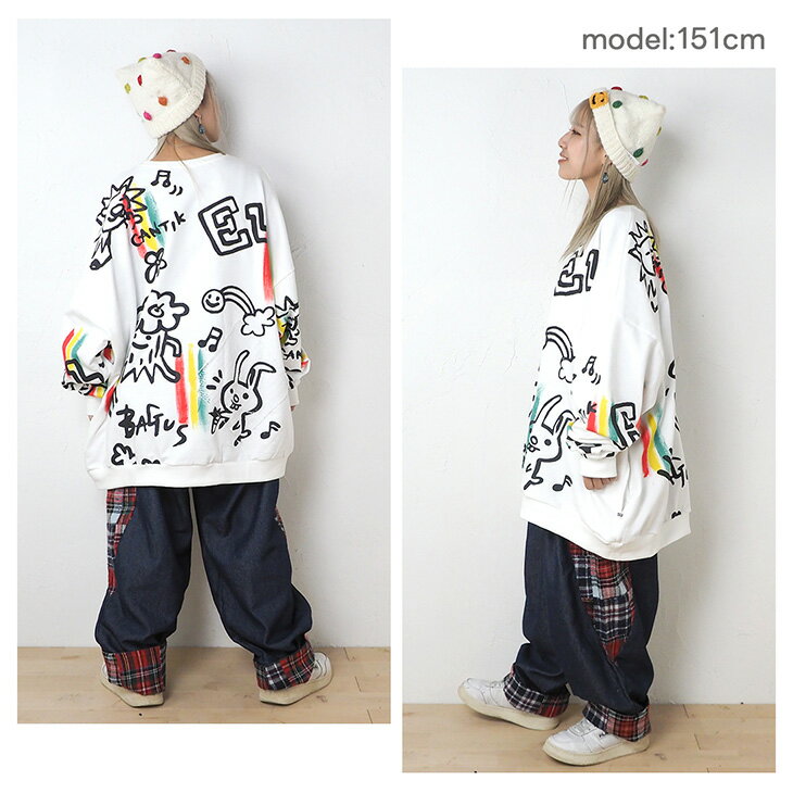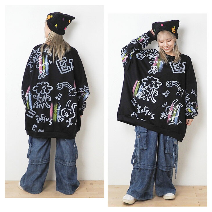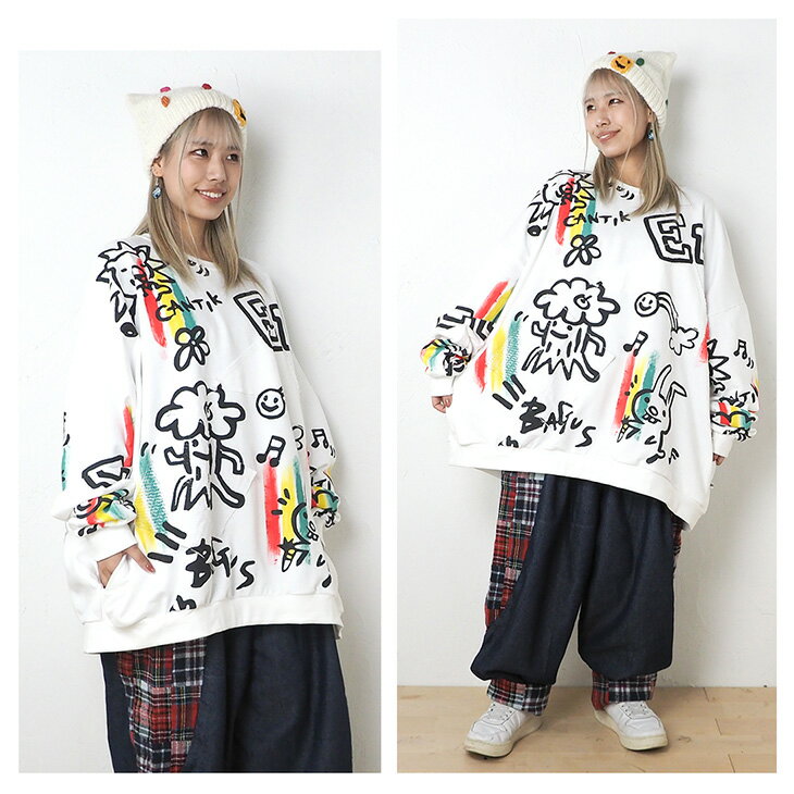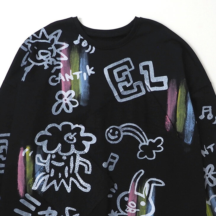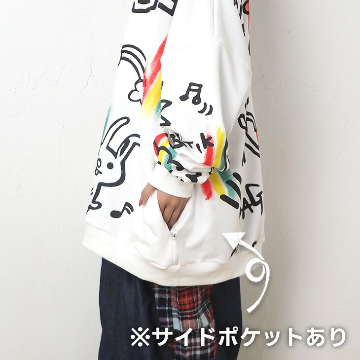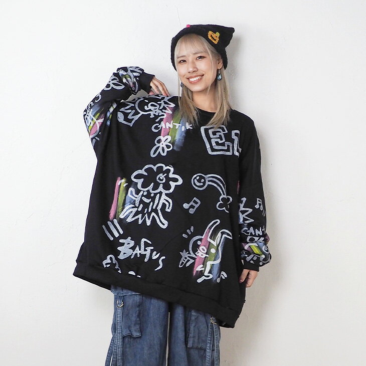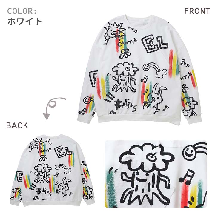 送料無料 落書き風総柄ペイント トレーナー レディース スウェット トップス ゆったり 大きい オーバーサイズ カジュアル ポップ カラフル ユニセックス 可愛い 個性的 オリジナル エスニック