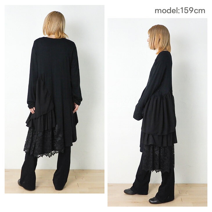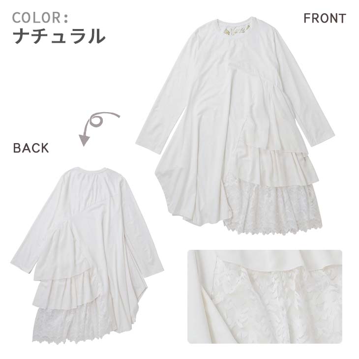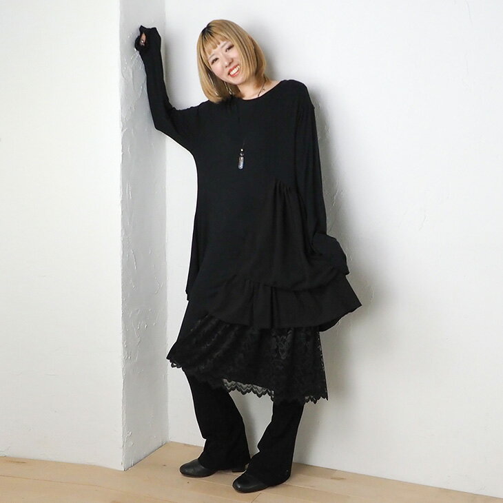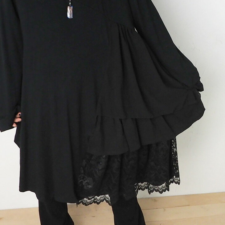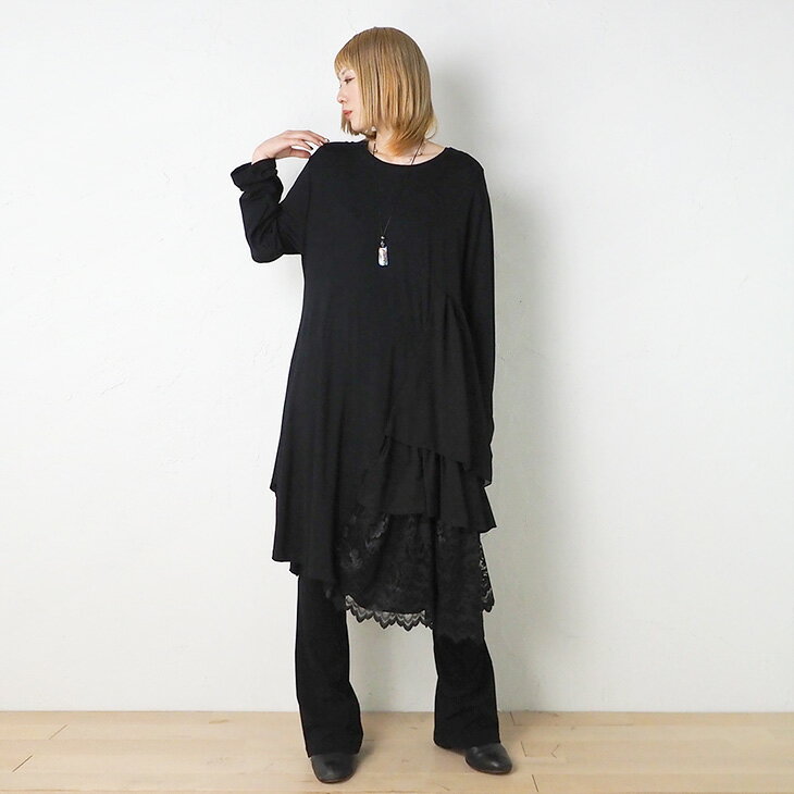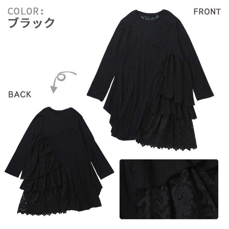 送料無料 VITA LITA(ウ゛ィータリータ)レーヨンレクラサイドフリルチュニック 無地レース レディース ワンピース ガーリー レース モノトーン 大人可愛い ゴシック