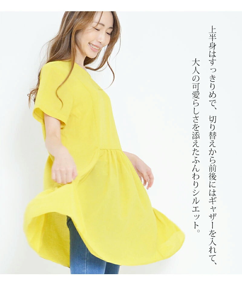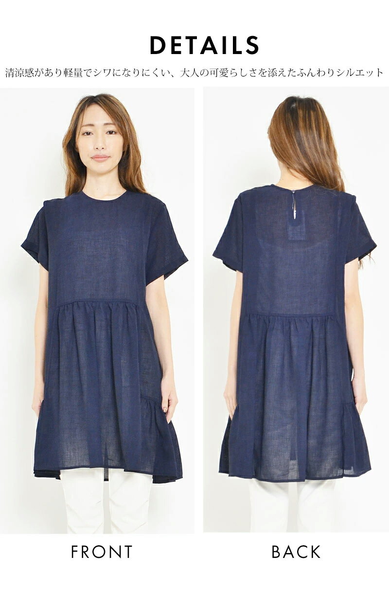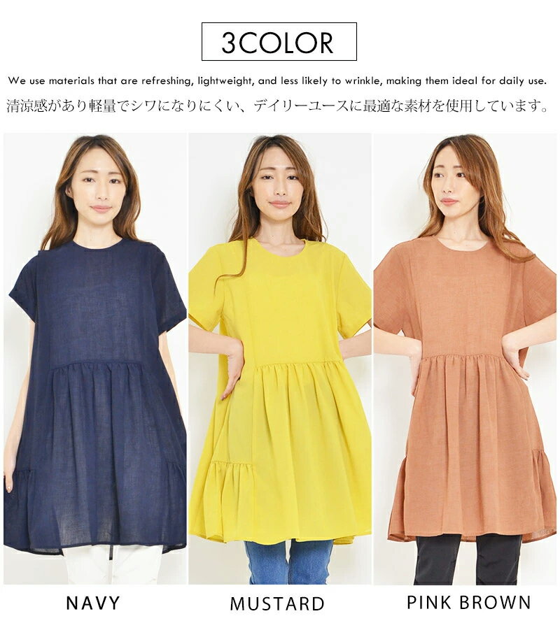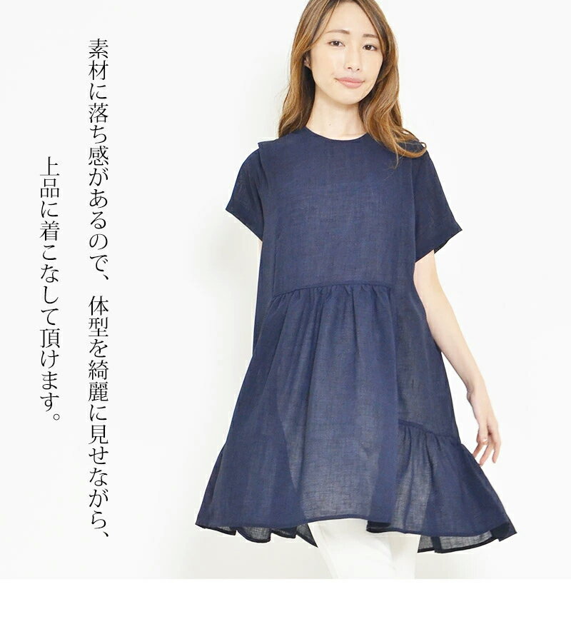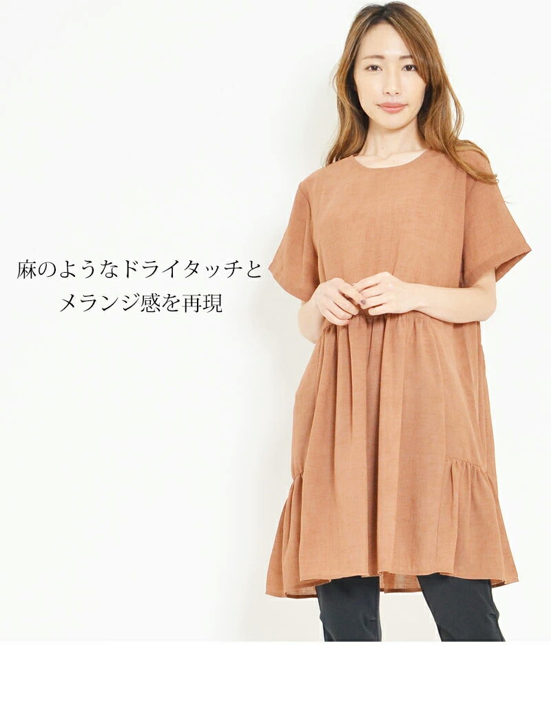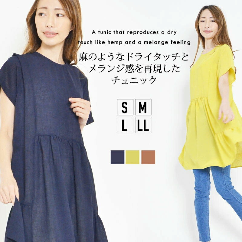麻のようなドライタッチとメランジ感を再現したチュニック【メール便送料無料】