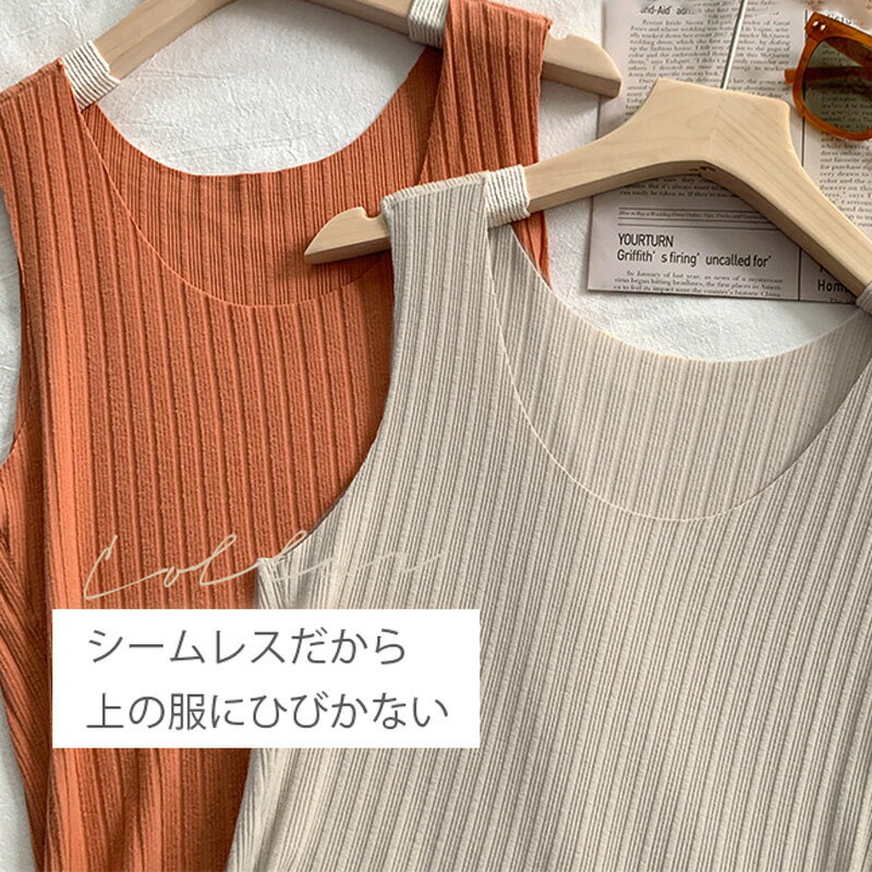 リブ タンクトップ レディース 微起毛 きれいめ 大きいサイズ シームレスタイプ インナー 肌着 肌色 黒 灰色 オレンジ 茶色