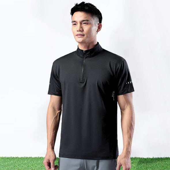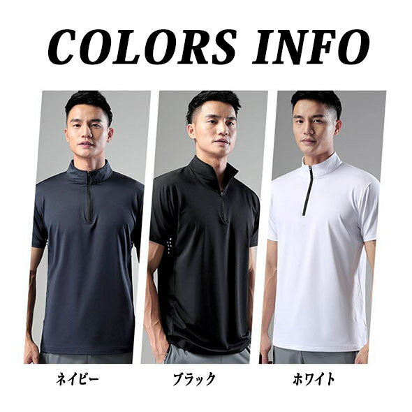 一部即納 ゴルフシャツ 半袖tシャツ モックネック メンズ ハーフジップ ハイネック トップス カットソー 無地 カジュアル スポーツウエア 運動着 作業着 おしゃれ