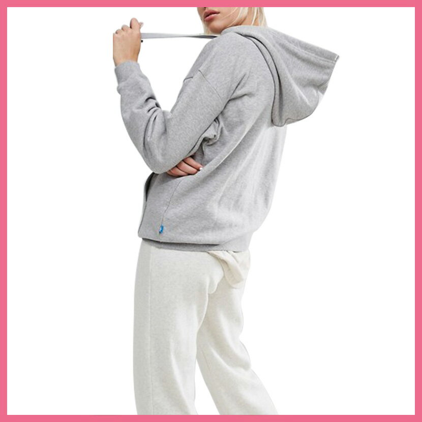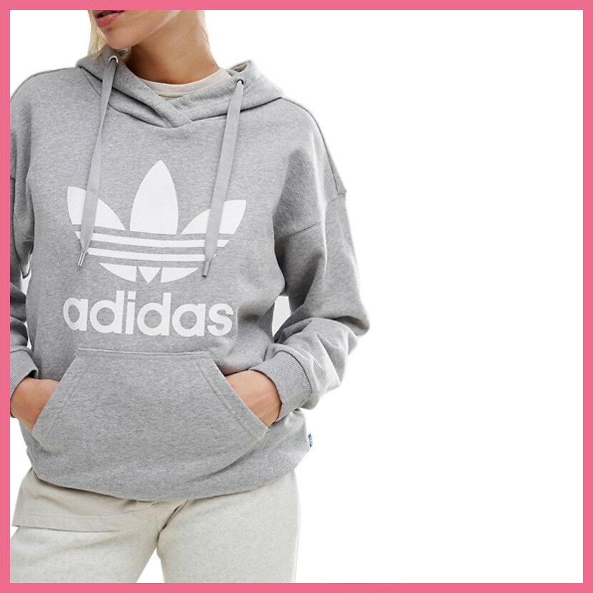 【海外限定!日本未発売!レディース】 adidas (アディダス) TREFOIL HOODIE WOMENS (トレフォイル フーディー) スウェット パーカー プルオーバー ロゴ MEDIUM GREY HEATHER/WHITE (グレー/ホワイト) BP9486 dpd-4