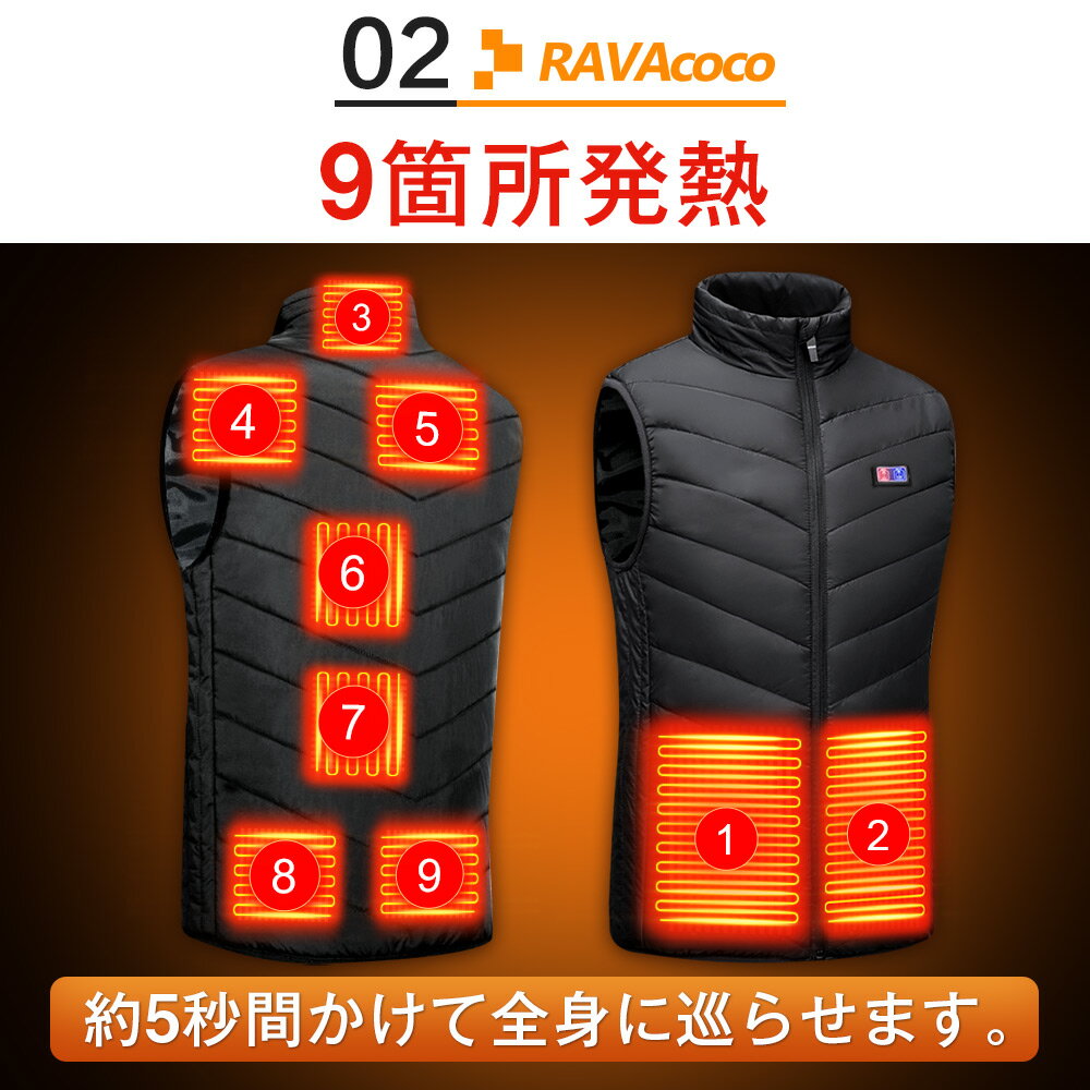 電熱ベスト ヒーターベスト バッテリー付 日本製繊維ヒーター 電熱ジャケット 3段温度調整 5秒速暖 バッテリー給電 防寒ベスト 加熱ベスト 加熱パネル9枚 洗える ベスト 前後独立 USB 超軽量 通勤通学 レディース メンズ おすすめ