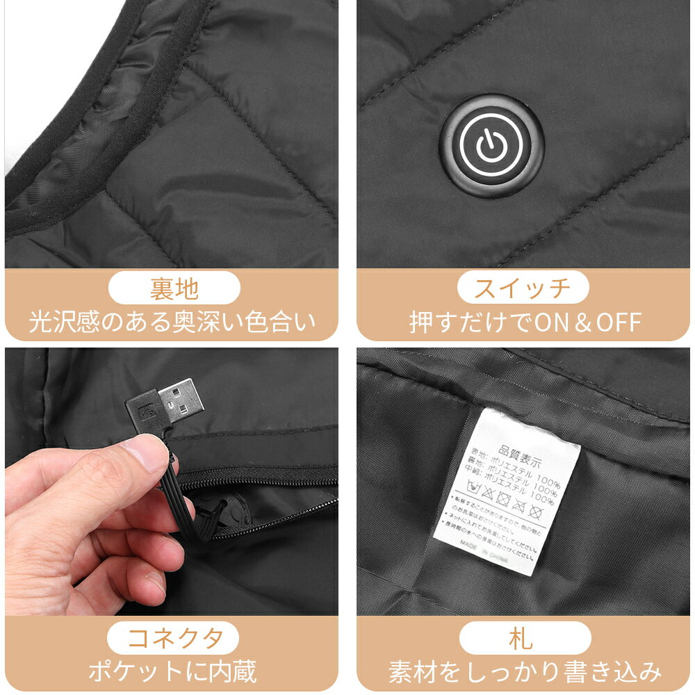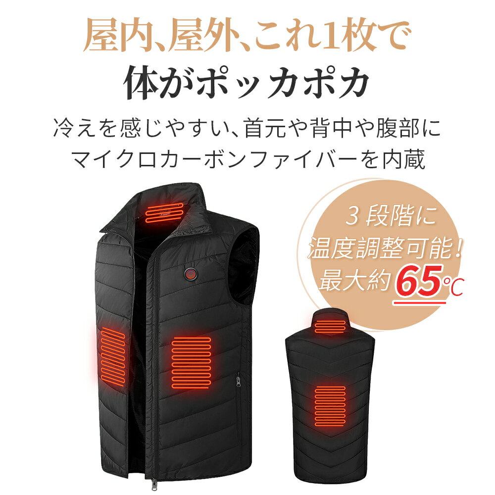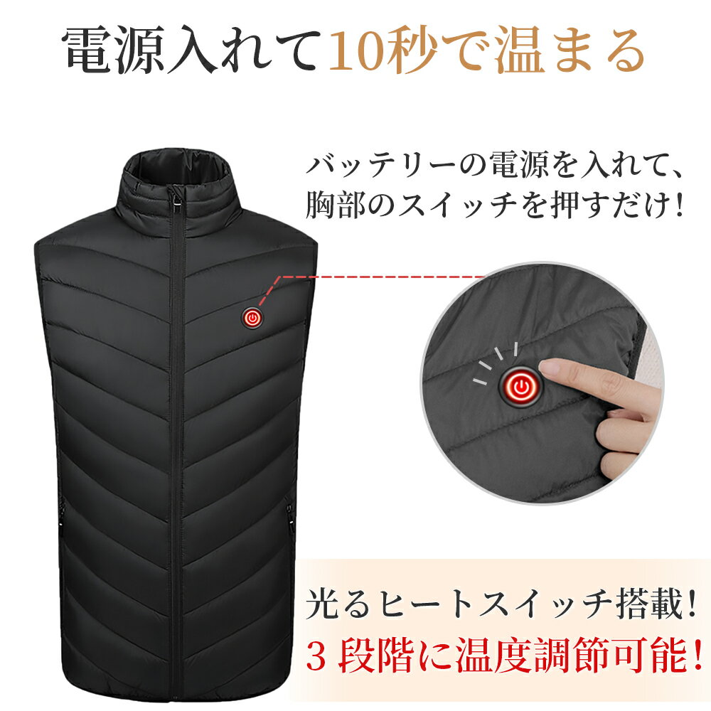 【在庫処分・衝撃価格!】電熱ベスト ヒーターベスト 電熱ジャケット バッテリー 給電 3段階温度調整 加熱ベスト 水洗い 電熱 ベスト usb 給電 usb加熱 アウトドア ダウンジャケット 男女兼用 レディース メンズ 冬用 防寒ベスト 防寒ベスト 軽量 暖かい