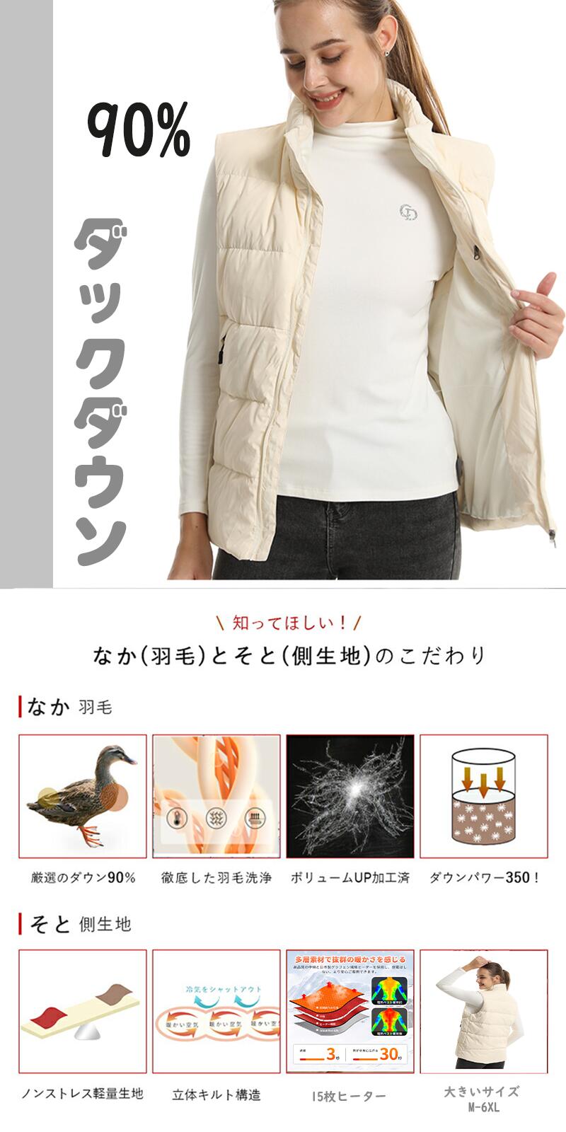 2024新型 ダウン 電熱ベスト USB式給電 すぐに使えます! 15エリア発熱 ヒータベスト 保温 電熱ジャケット バイクウェア 発熱ベスト 電熱ウェア お釣り 大雪対策 電気ベスト防寒服 秋冬物 敬老の日 防寒アウター 防寒ジャケット男女兼用 袖なし大人気