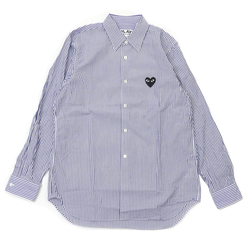 [期間限定ポイント20倍!] 新品 プレイ コムデギャルソン PLAY COMME des GARCONS MENS BLACK HEART STRIPE L/S SHIRT 長袖シャツ BLUE ブルー 青 メンズ