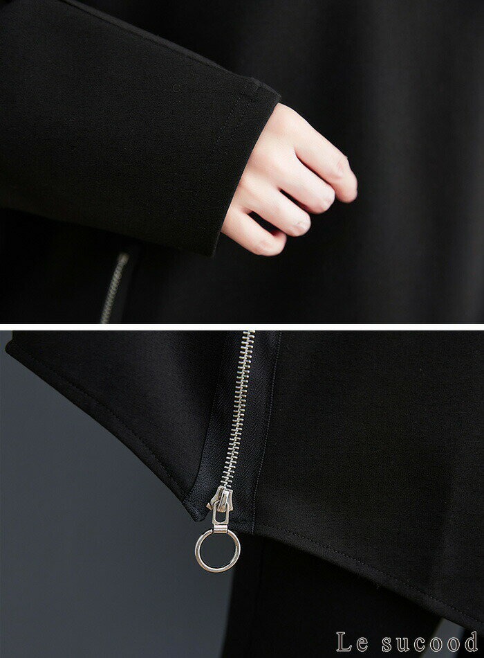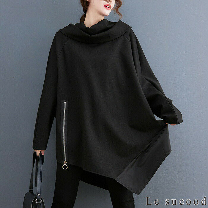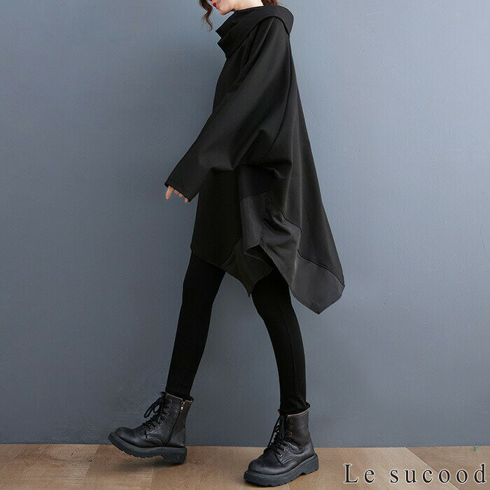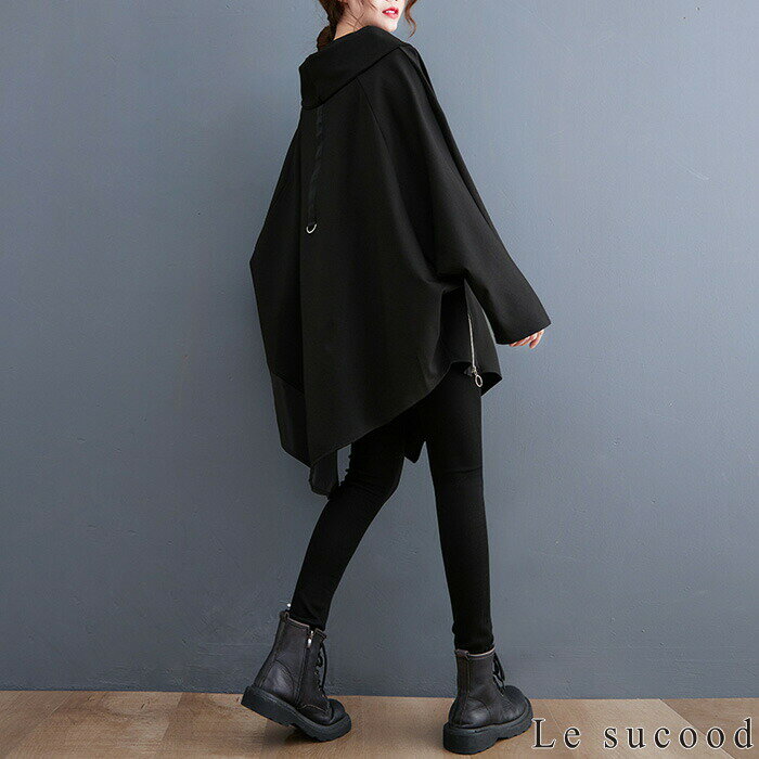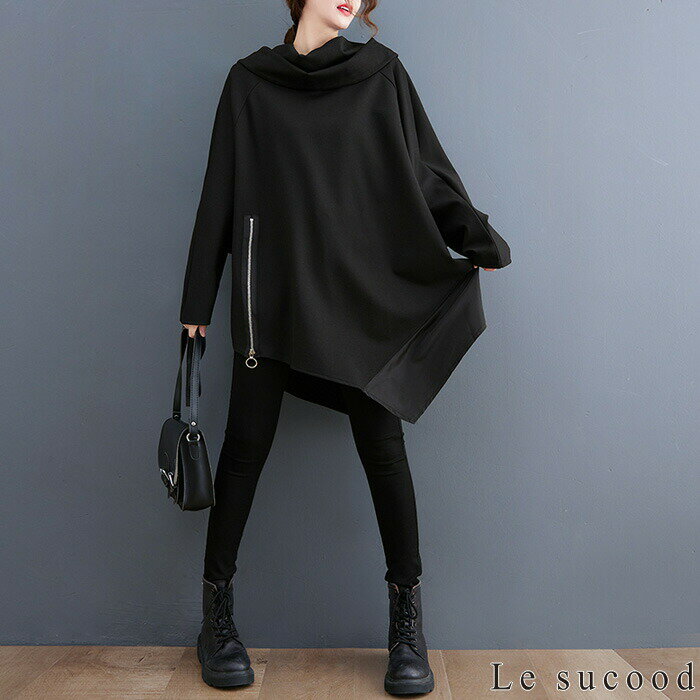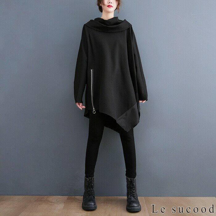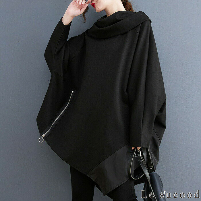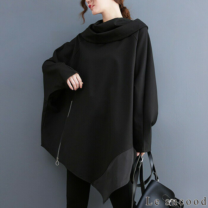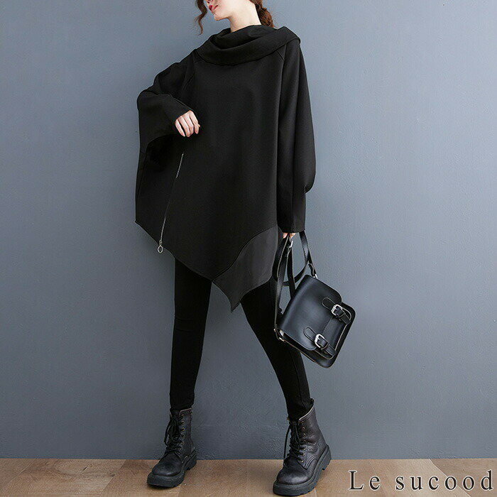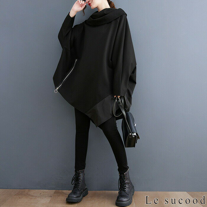 【Le sucood】 アシメジップパーカー アシメパーカー デザインパーカー 切り替えパーカー プルオーバーパーカー オーバーサイズ ドロップショルダー ゆったり ボリュームパーカー モモンガパーカー 長袖 レディース ストリート系 モード系 個性的 原宿系
