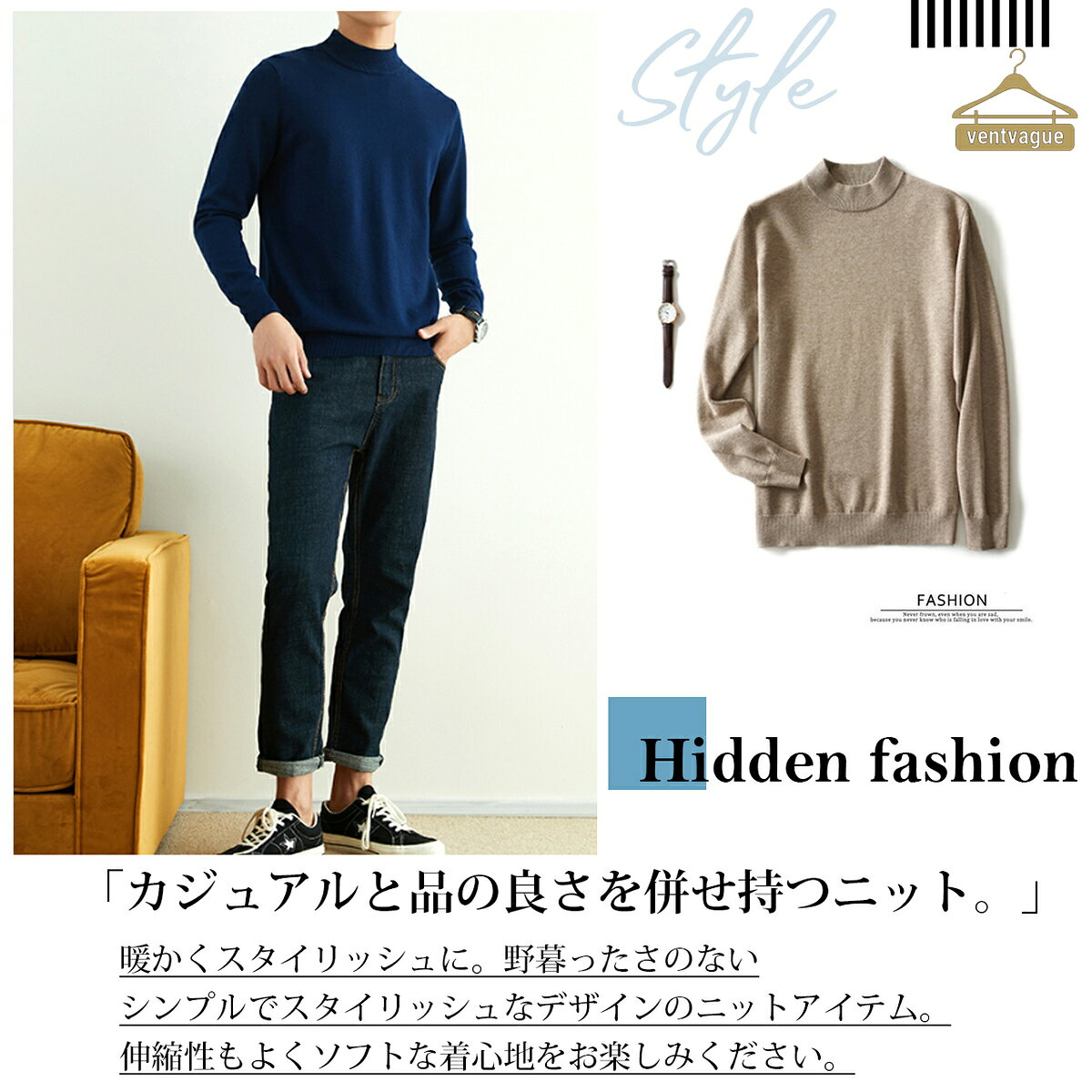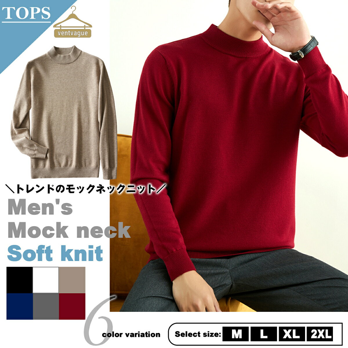 タートルネック ニット ハイネック モックネック きれいめ オフィスカジュアル シンプル メンズ メンズニット トップス セーター 長袖 長袖ニット カジュアル 上品 ニットソー タイト カシミアタッチ M L XL 2XL_MU0507