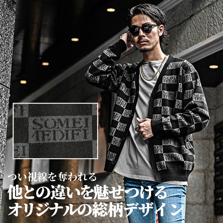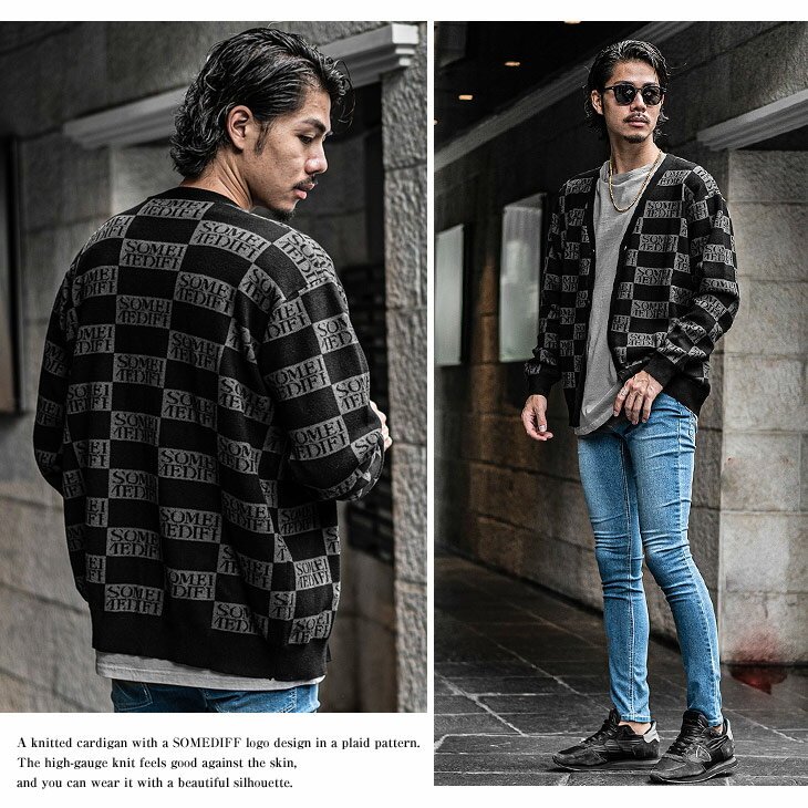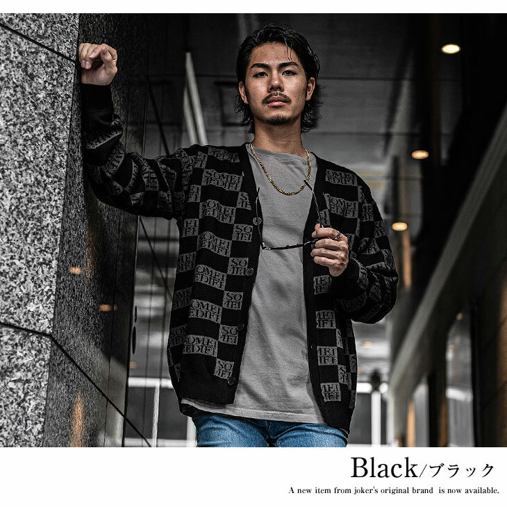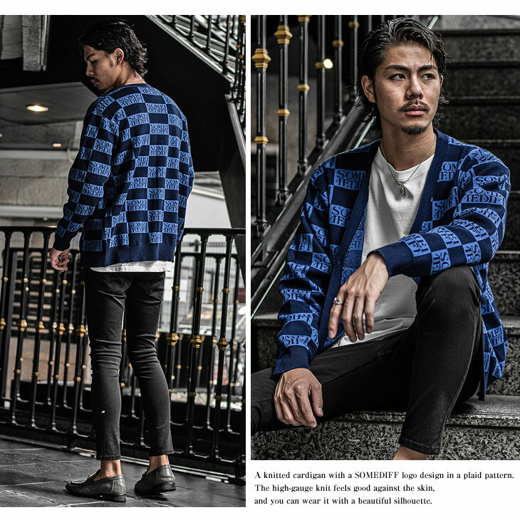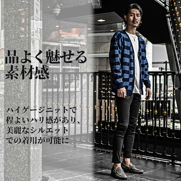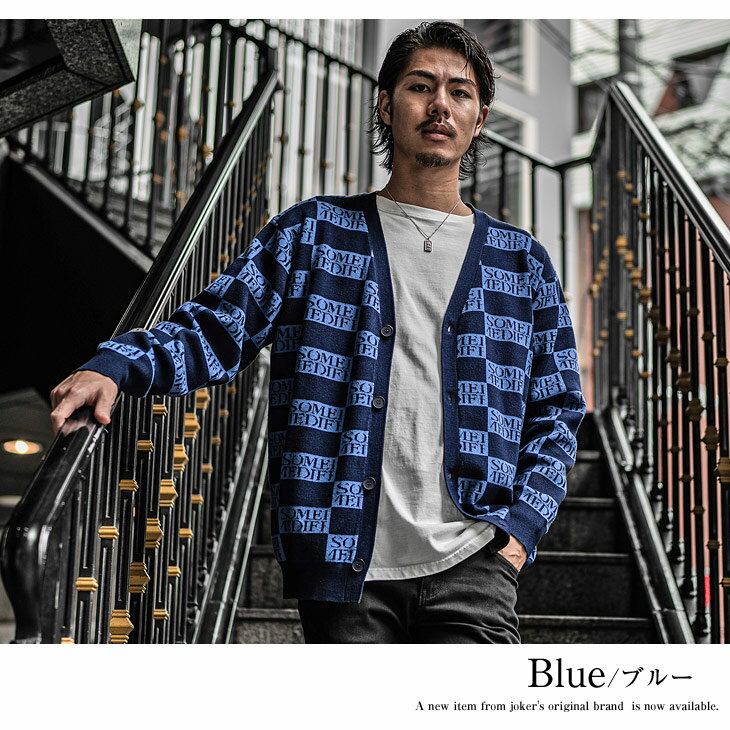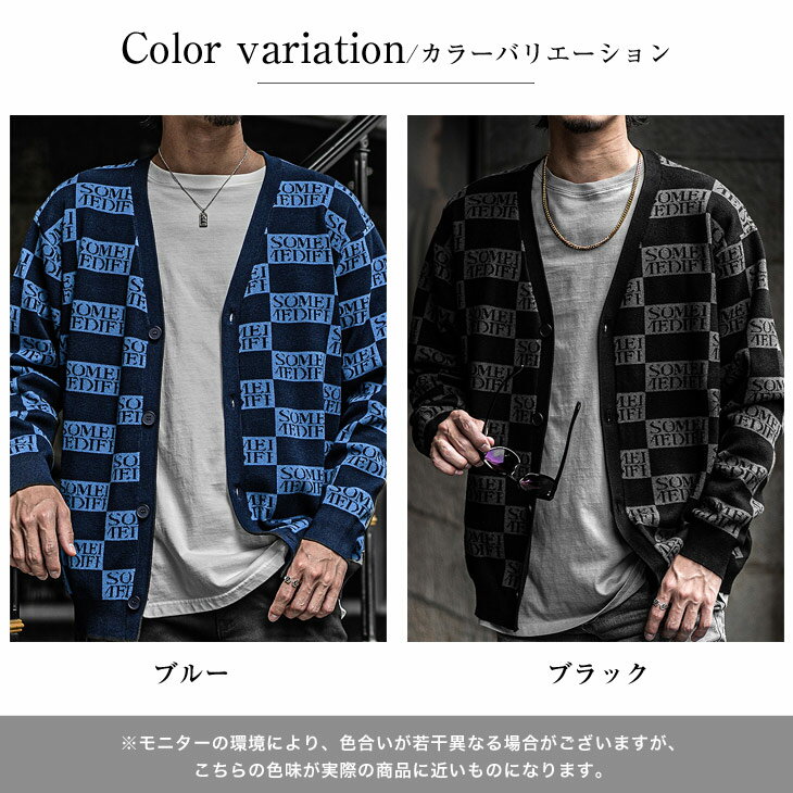 カーディガン メンズ 秋 カーディガン 秋冬 オーバーサイズ カーディガン ビッグシルエット ゆったり 羽織り チェック柄 長袖 ロゴ 黒 ブルー ブラック 大きいサイズ LL XL カーデガン 冬 冬服 冬物 秋冬 メンズファッション お兄系 オラオラ系 ちょいワル