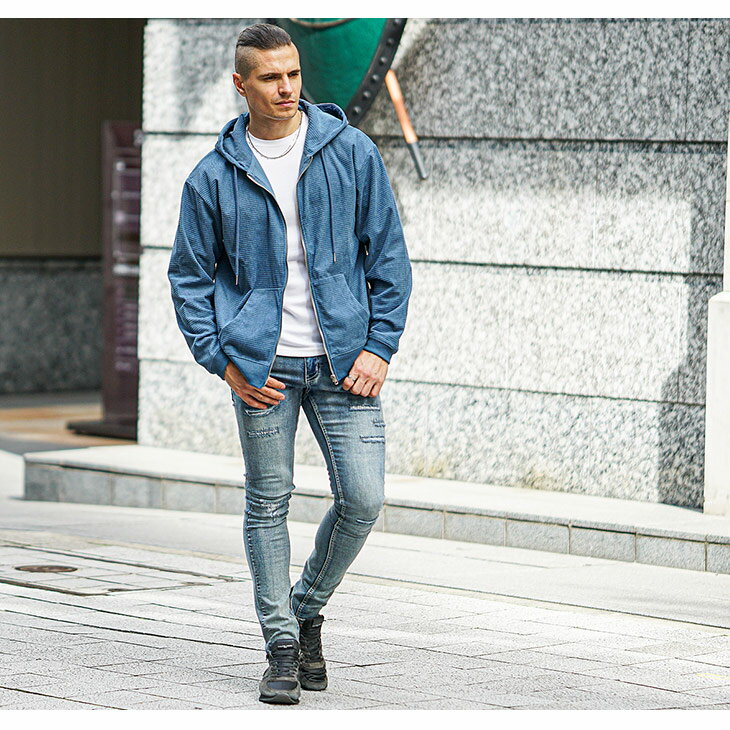 パーカー メンズ ブランド ジップアップパーカー メンズ 無地 ジップパーカー スウェット フーディ ワッフル 生地 フード 黒 ブラック 青 ブルー カーキ パーカ 秋 秋服 秋物 秋冬 メンズファッション ちょいワル ちょい悪 お兄系 オラオラ系