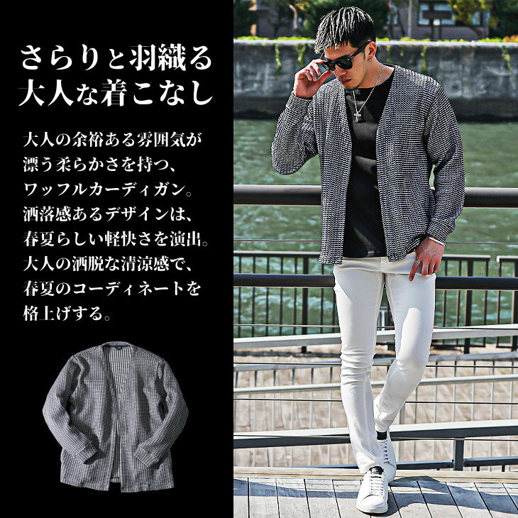 カーディガン 春夏 カーディガン メンズ 柄 カーディガン 薄手 白 黒 ネイビー ワッフル 生地 ビジネス カジュアル 冷房対策 セットアップ 対応 部屋着 ルームウェア 秋 秋服 秋物 秋冬 メンズファッション リゾート サーフ系 ちょいワル お兄系