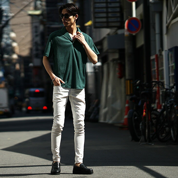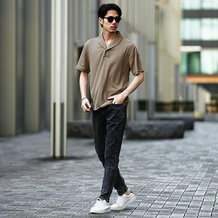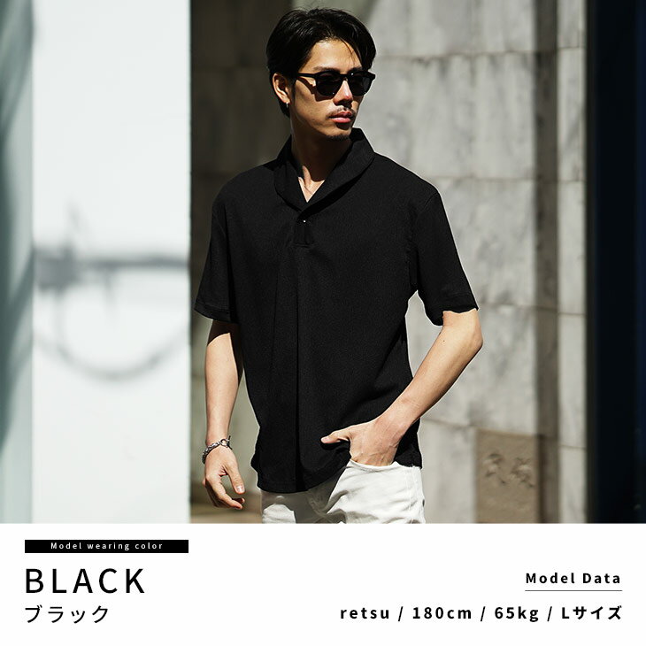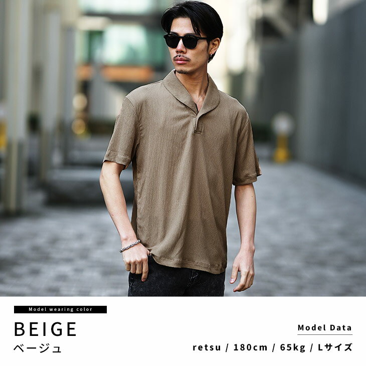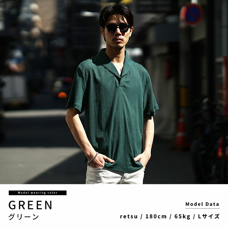 半袖ポロシャツ メンズ ショールカラー ポロシャツ メンズ シャツ メンズ 半袖 シャツ スキッパーシャツ 5分袖 ポロ リゾート 黒 ブラック ベージュ グリーン 薄手 薄い 涼しい 冷房対策 LL XL 夏 夏服 夏物 春夏 メンズファッション リゾート サーフ系 ちょいワル お兄系